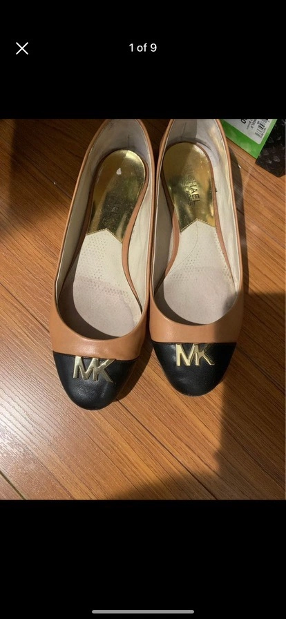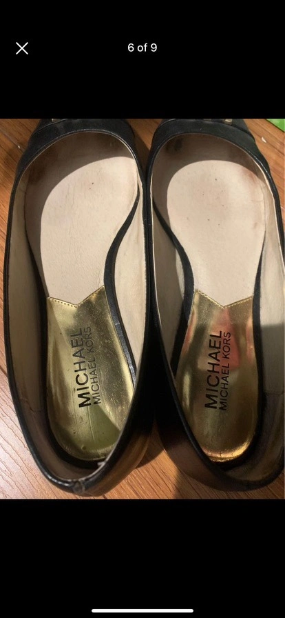 Michael kors flats. Good used condition. $15 each pair. Both are size 7.5. Scuffed in front toe and back heel as shown in photos reflective in price. Can be fixed at a shoe repair and insole could be used or replaced.