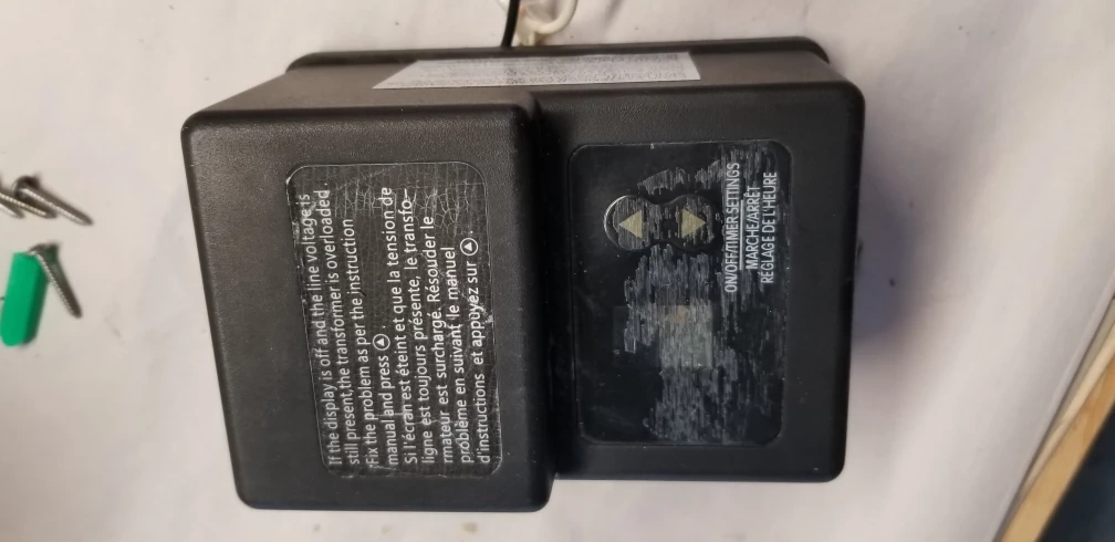 Timer includes a 12v transformer, cord, and a circuit board with a digital display. There is 12V out of the transformer but looks like some corrosion on the circuit board that's preventing it from working. has a light sensor and timer. Instead of going to the landfill, maybe someone can fix it or use for parts.