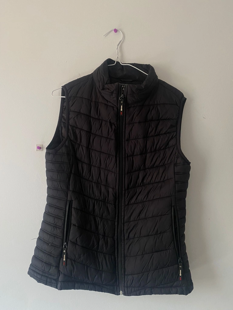 Black puffer vest. Great for winter.