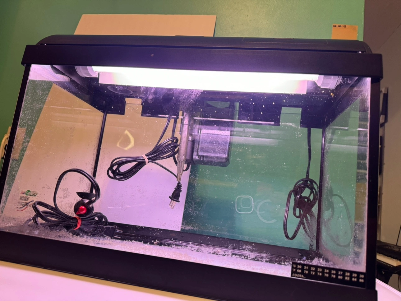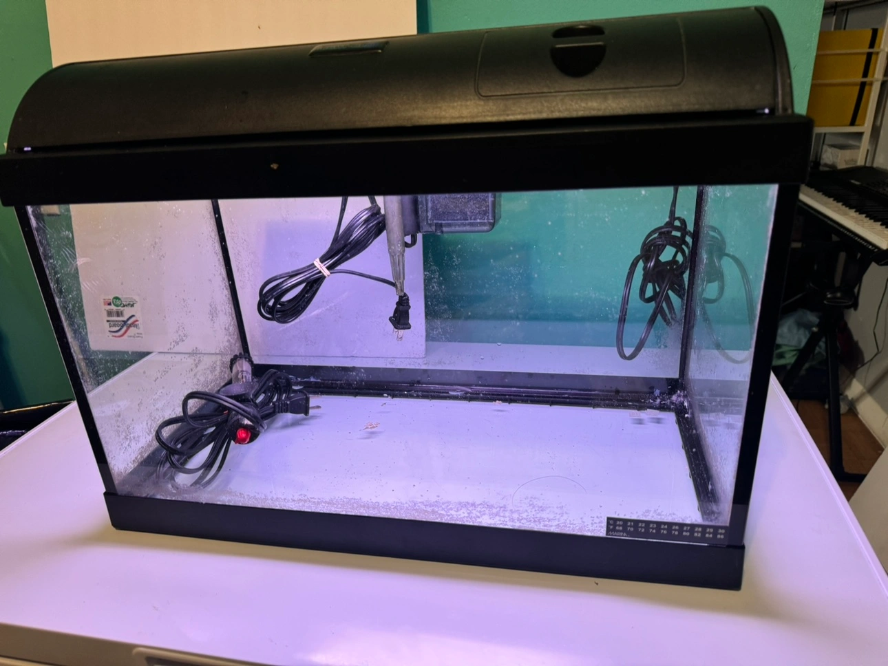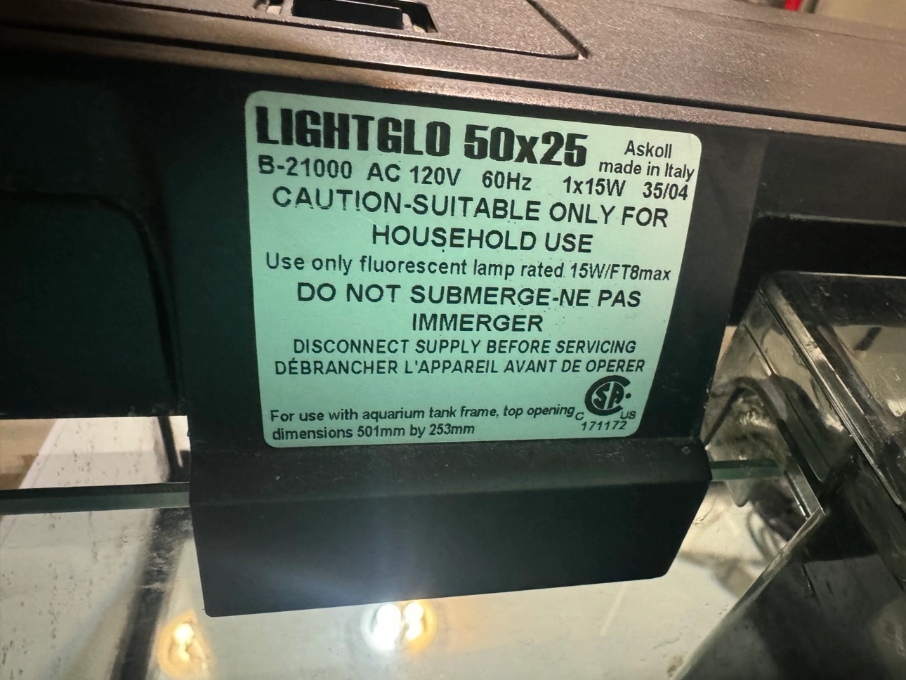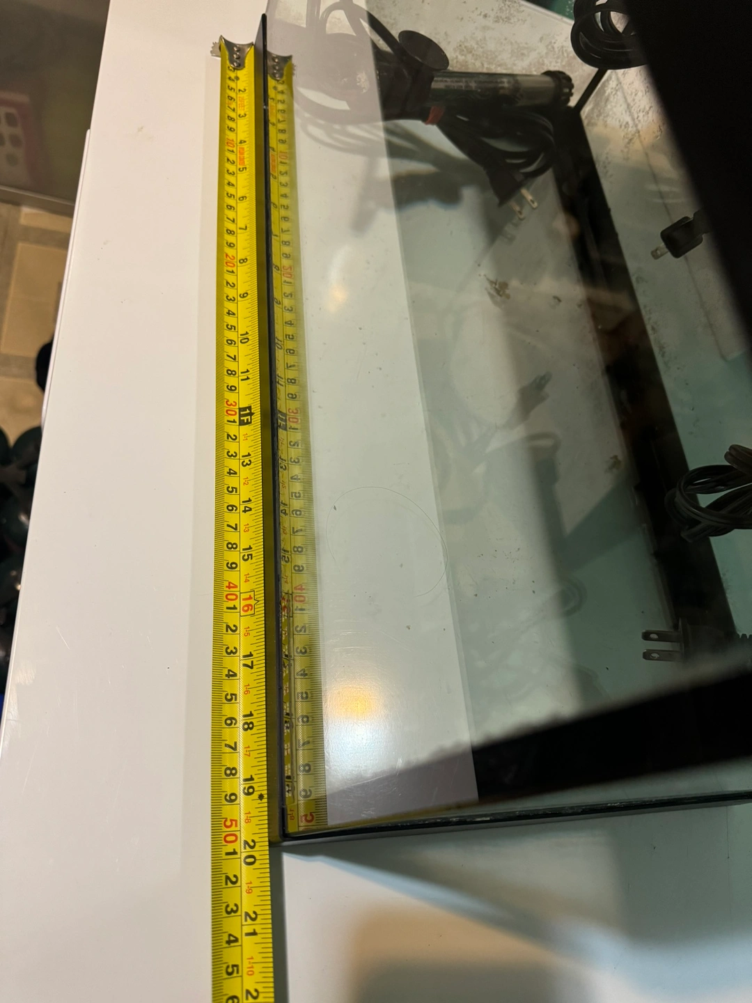 I believe This is a 10-gallon aquarium It is in good condition. There is some minor wear and tear from use. The light and filter and heater are in working condition.