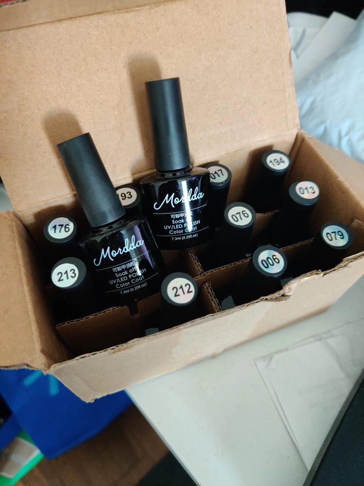 A box of 10 Mordda soak off UV/LED nail polishes. Still has lots of polish in them. Used sparingly. preferably meetup in Markham 16th ave and BurOak