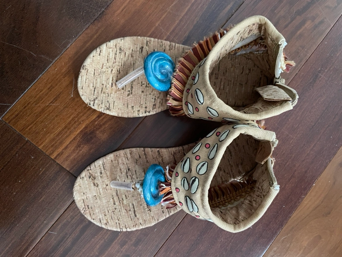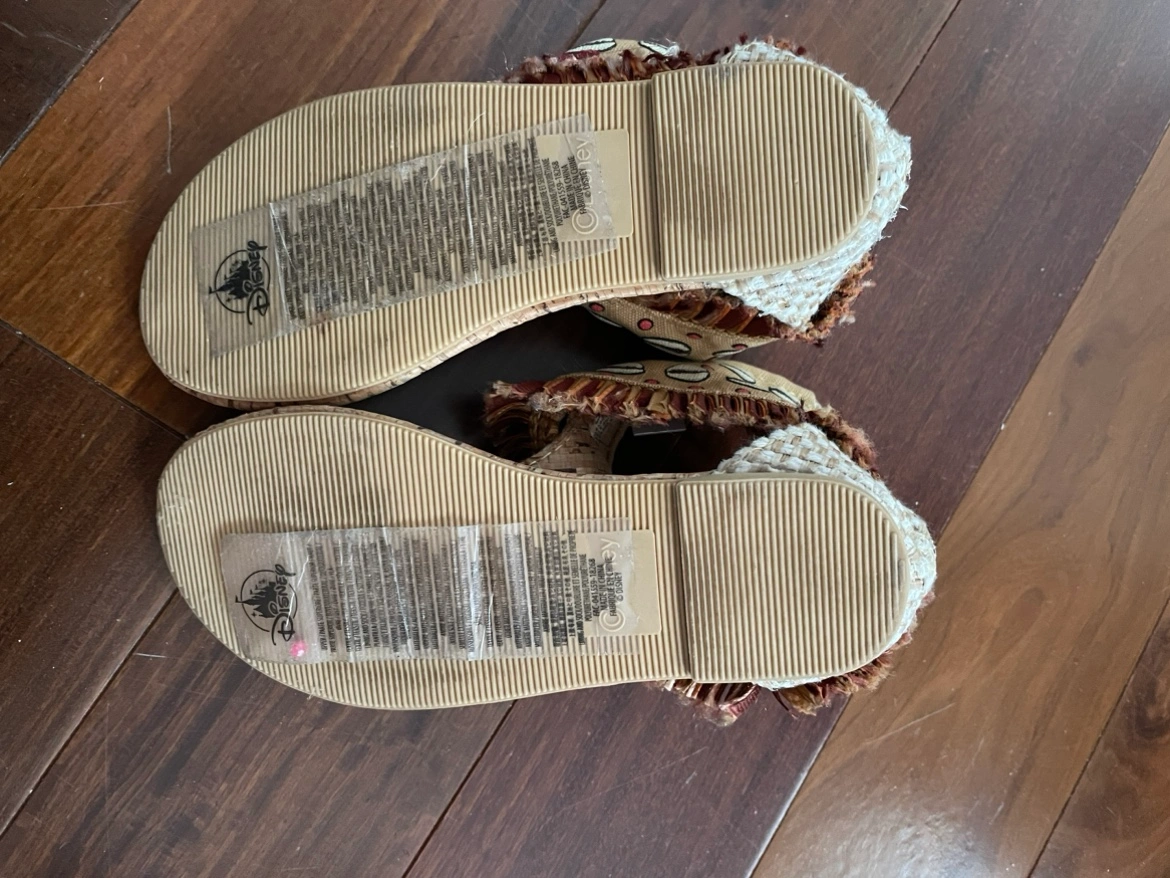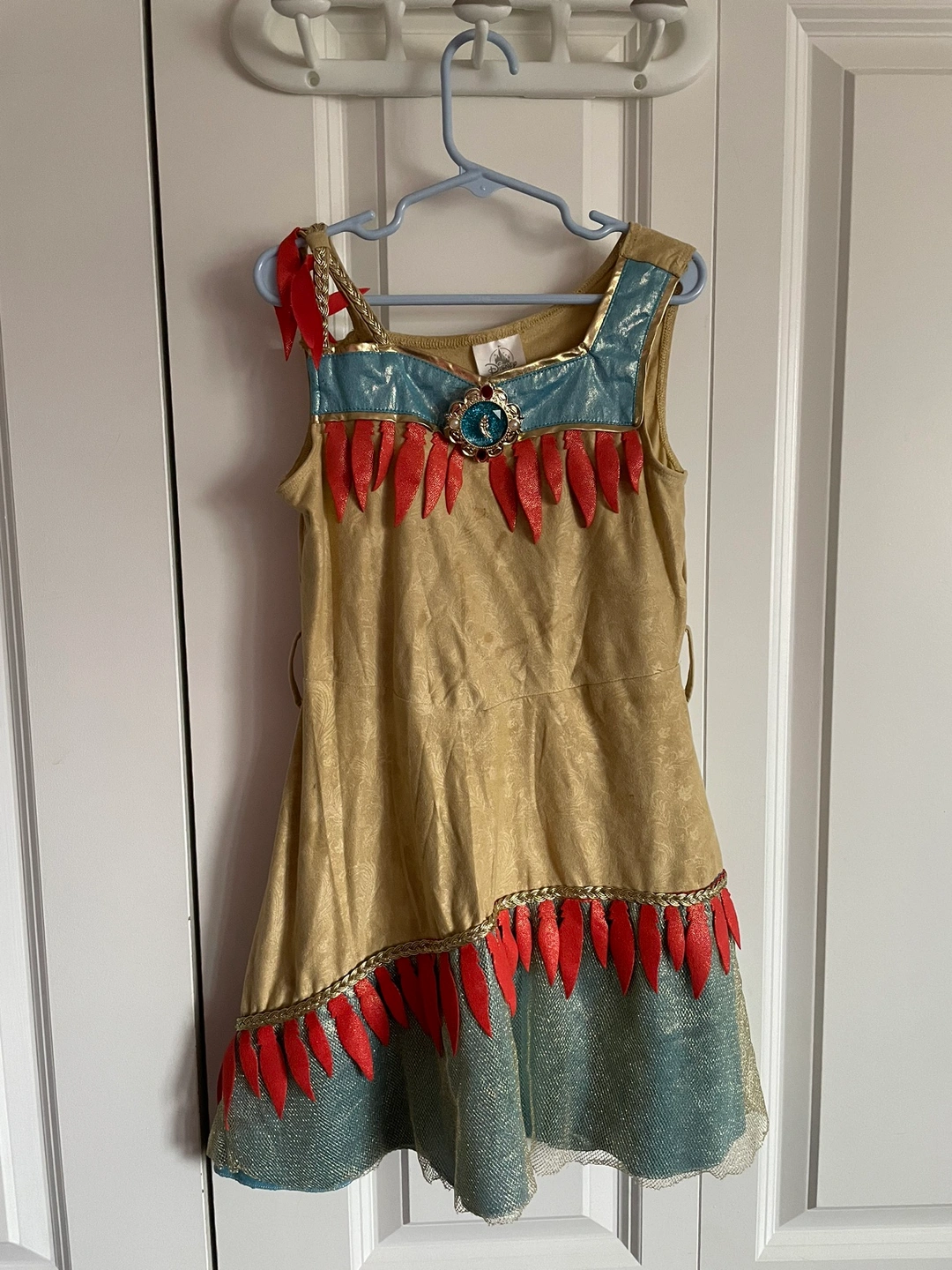 Dress size 5/6 Used once Original Disney Pocahontas Costume in a great condition Comes with shoes and arm pieces