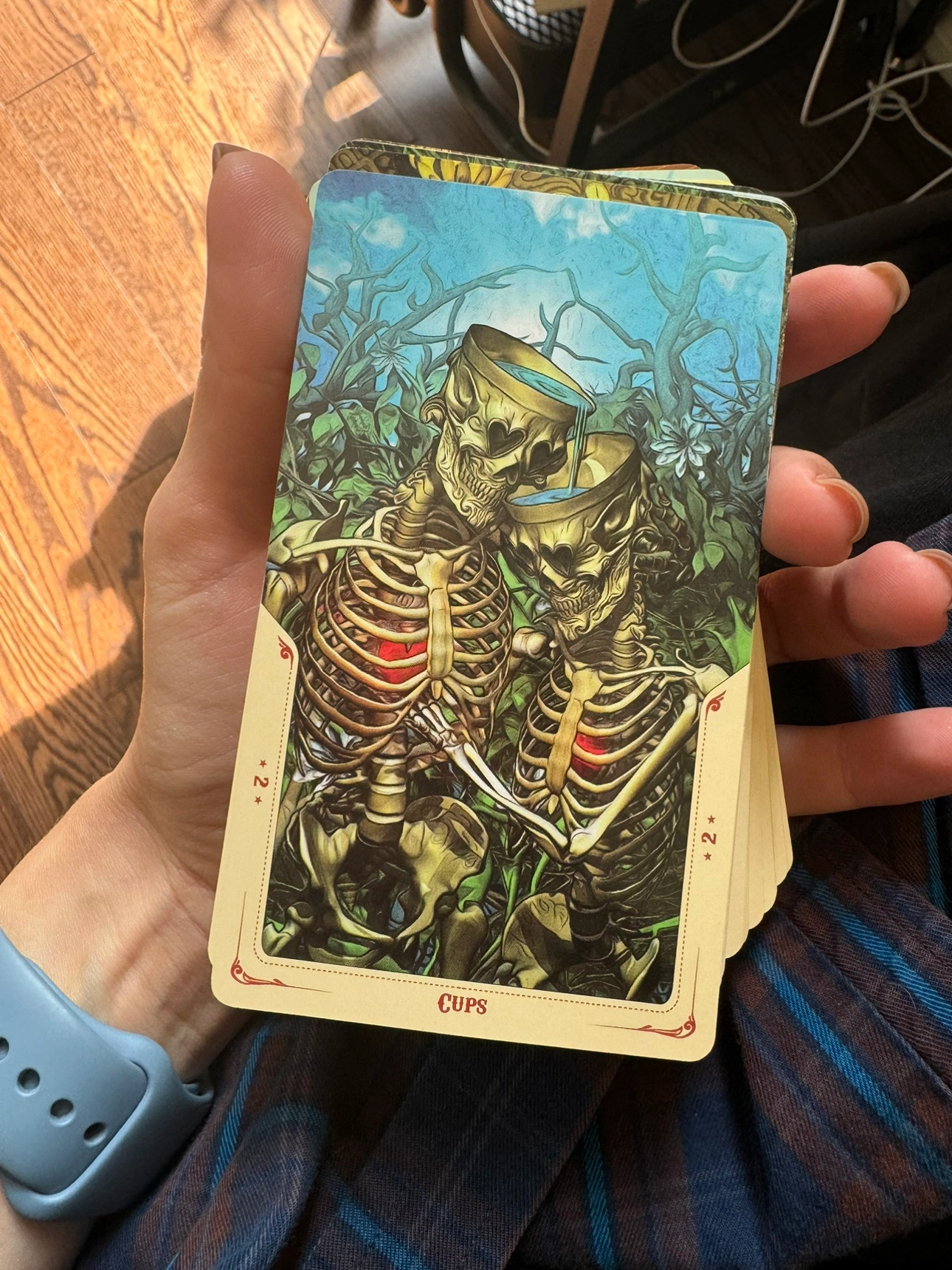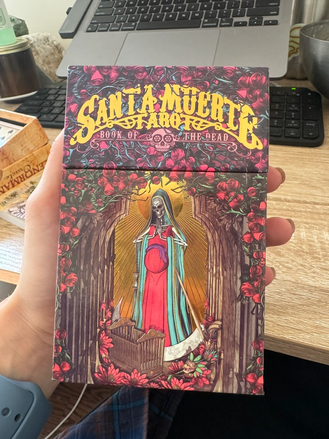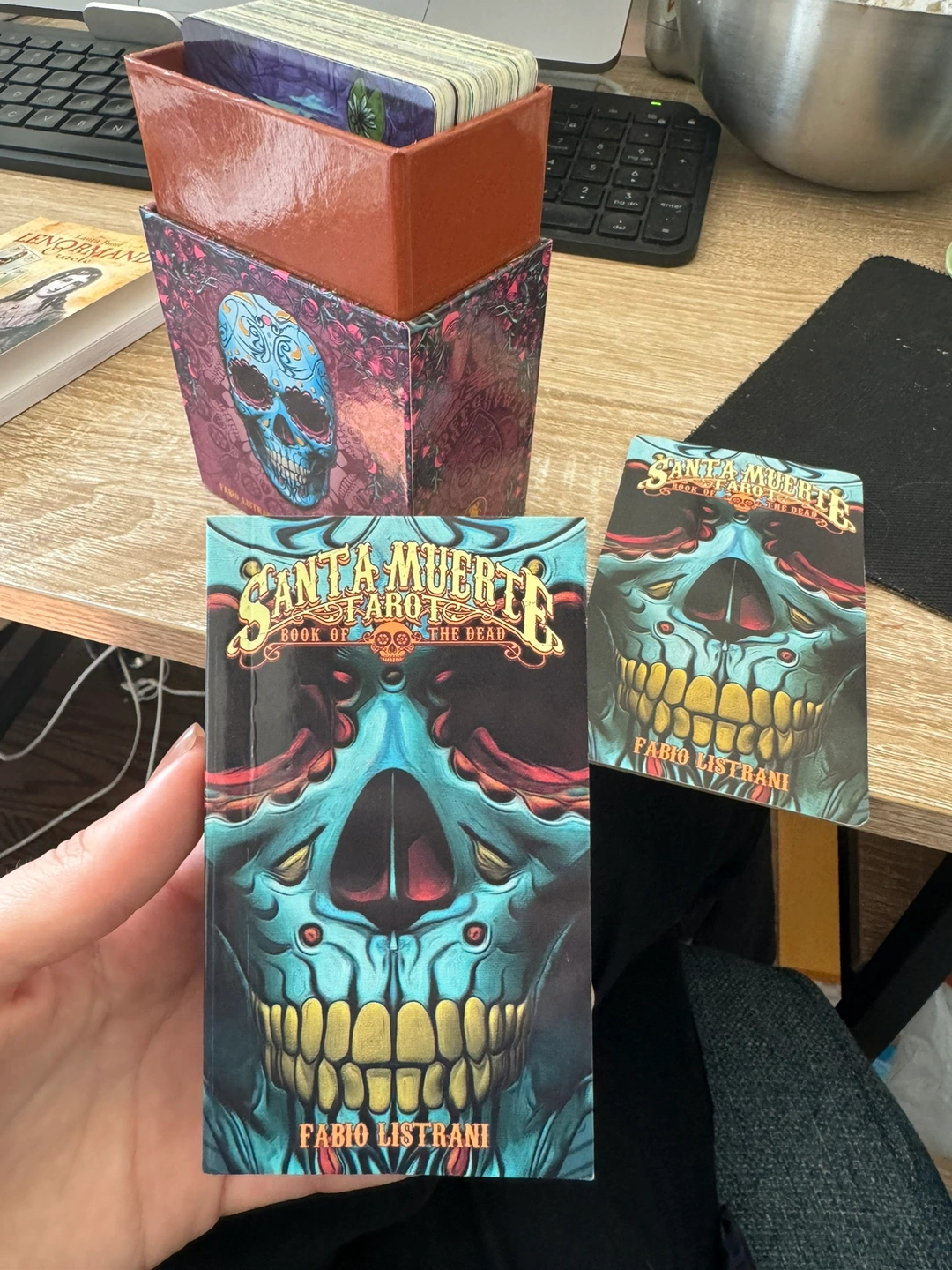 Full deck of 78 cards in original box. Includes instruction booklet to help you on your Tarot journey. Used only a couple of times, perfect condition. No cards are missing. Features stunning Santa Muerte themed art by Fabio Listrani!