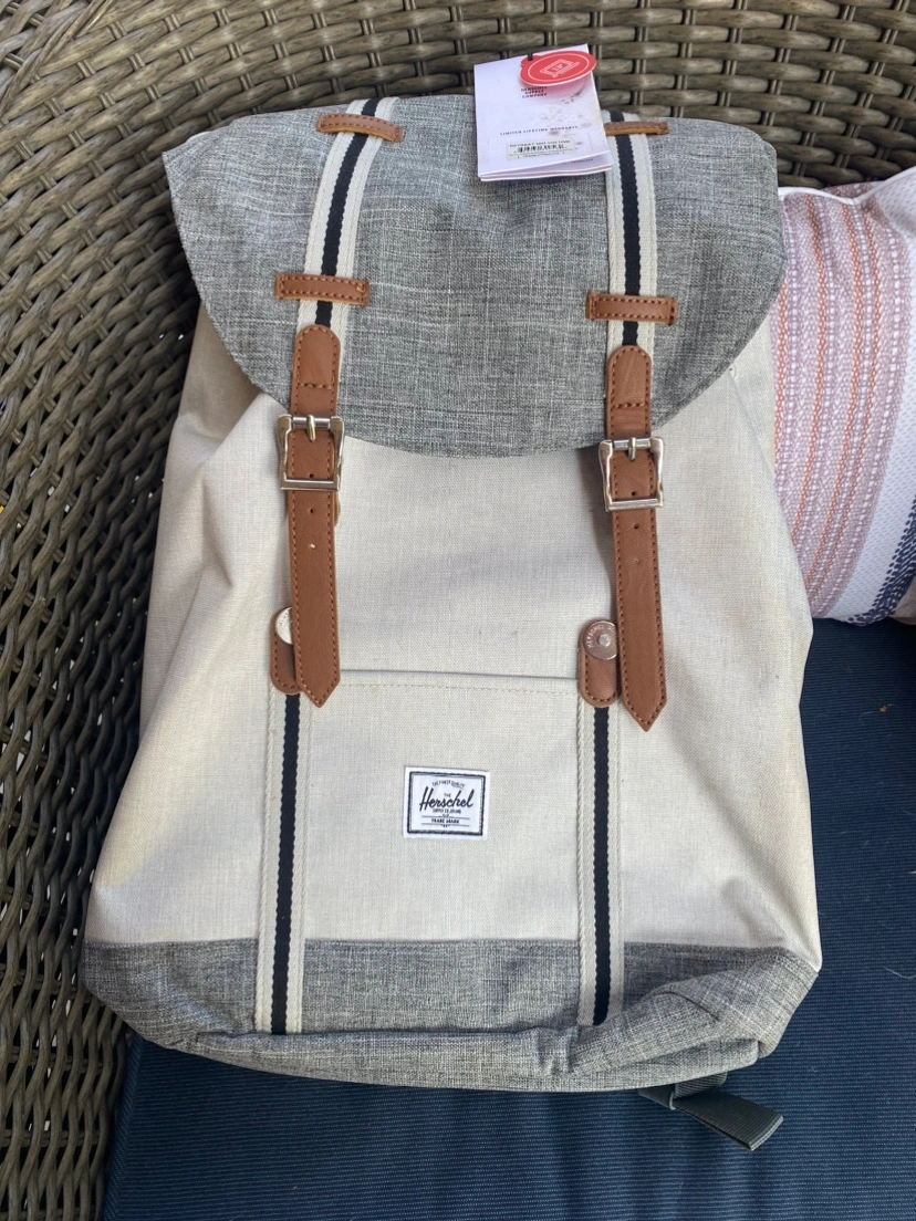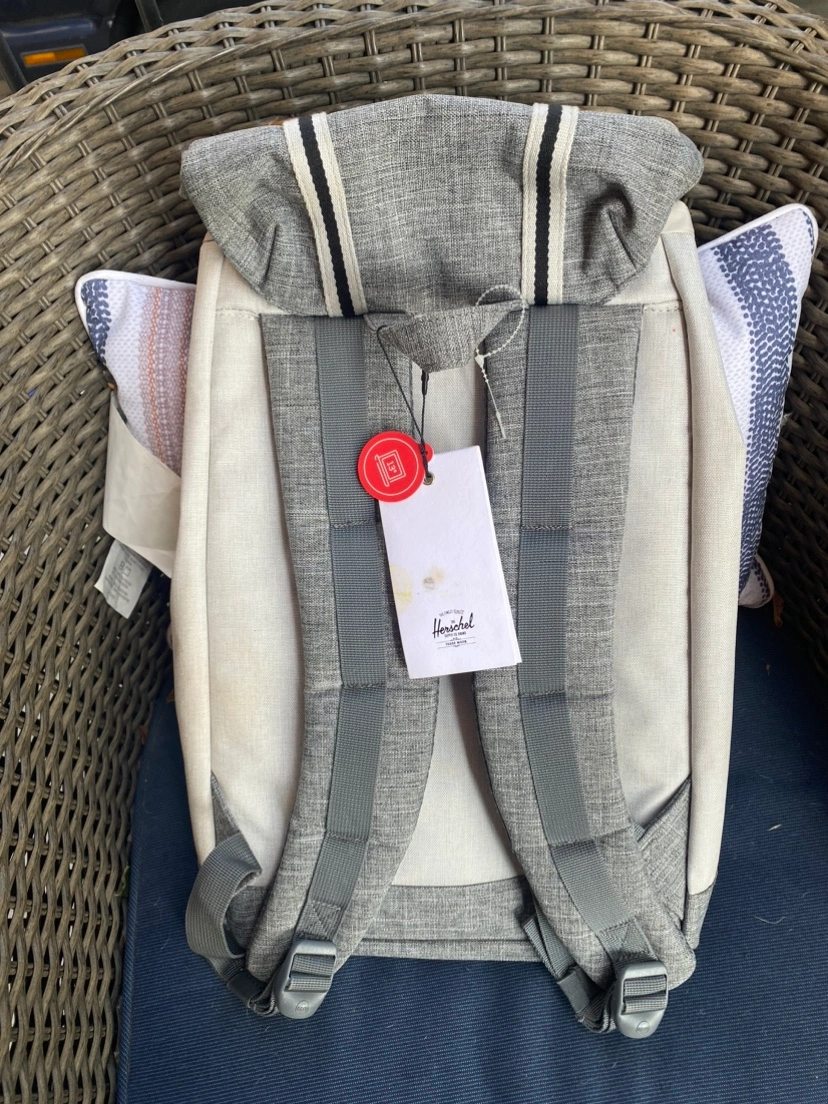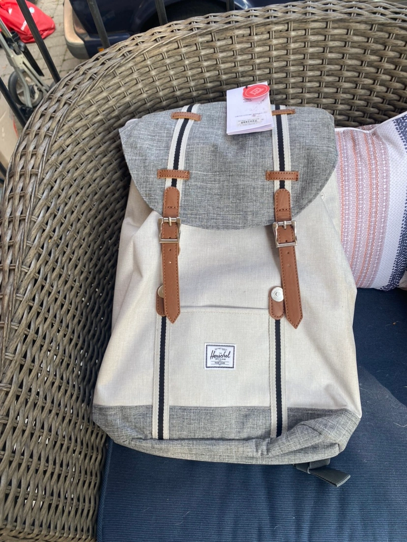 Grey and white backpack with brown accents. By Herschel supply Co. New with tags. Great for back to school