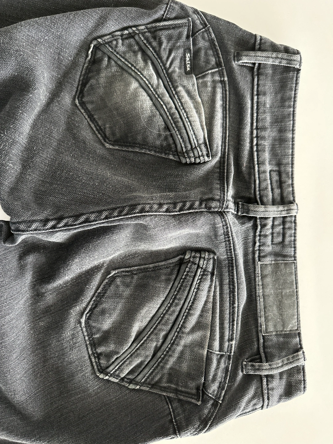 These are charcoal (grayish) Salsa Jeans in size 27. The jeans are in a bootcut style. They have a button fly and five pockets. They are made in Portugal. Slim cut I altered the inseam of the jeans by 5 cm Check my other listing I am open to offers