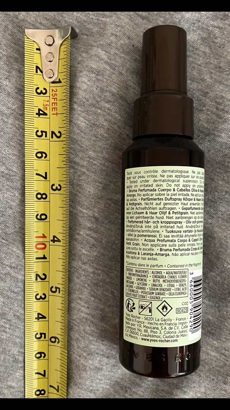 This is a 100ml bottle of Yves Rocher's Olive & Petitgrain Body and hair Mist, which is an Olive and Petitgrain scented fragrance, with Olive fruit extract. I’ll be moving at some point, so I’m selling things ahead of time. Made in France 🇫🇷 brand. These retail for $16.95+ tax, as shown in last picture. It’s only been sprayed a few times, so the discounted price reflects this. Still mostly full, selling for only $8! ✴️If you buy All 3 Yves Rocher body mists I have listed, then it’s only $14 for all 3.✴️ 🫒🌸💚m
