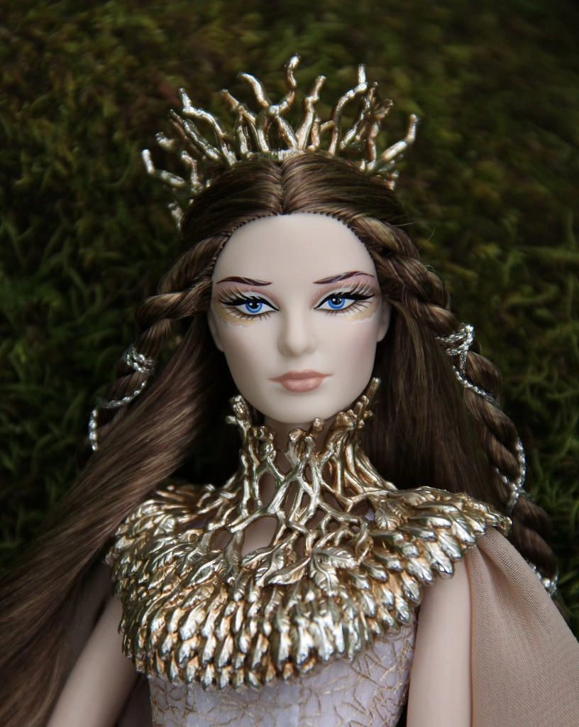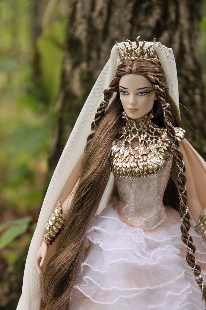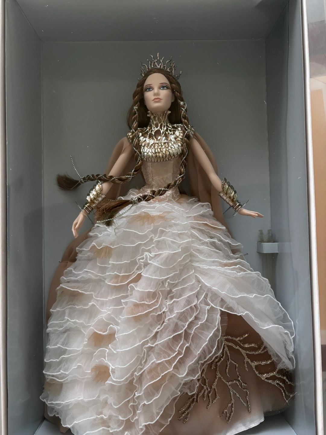 The second doll in the Faraway Forest™ Collection is a mythical beauty adorned in a gown with coppery branches, ruffled tiers of ethereal novelty knit, and a bodice wrapped in lace. Her crown, neckpiece, and shoes share the natural motif and are accented with a feather design. Bold armbands complete the look. This doll is new in the box, was never taken out and comes from clean non smoking house. Gold Label limited edition - only 7700 was produced worldwide. Selling this item on multiple platforms. This is the lowest price for it.