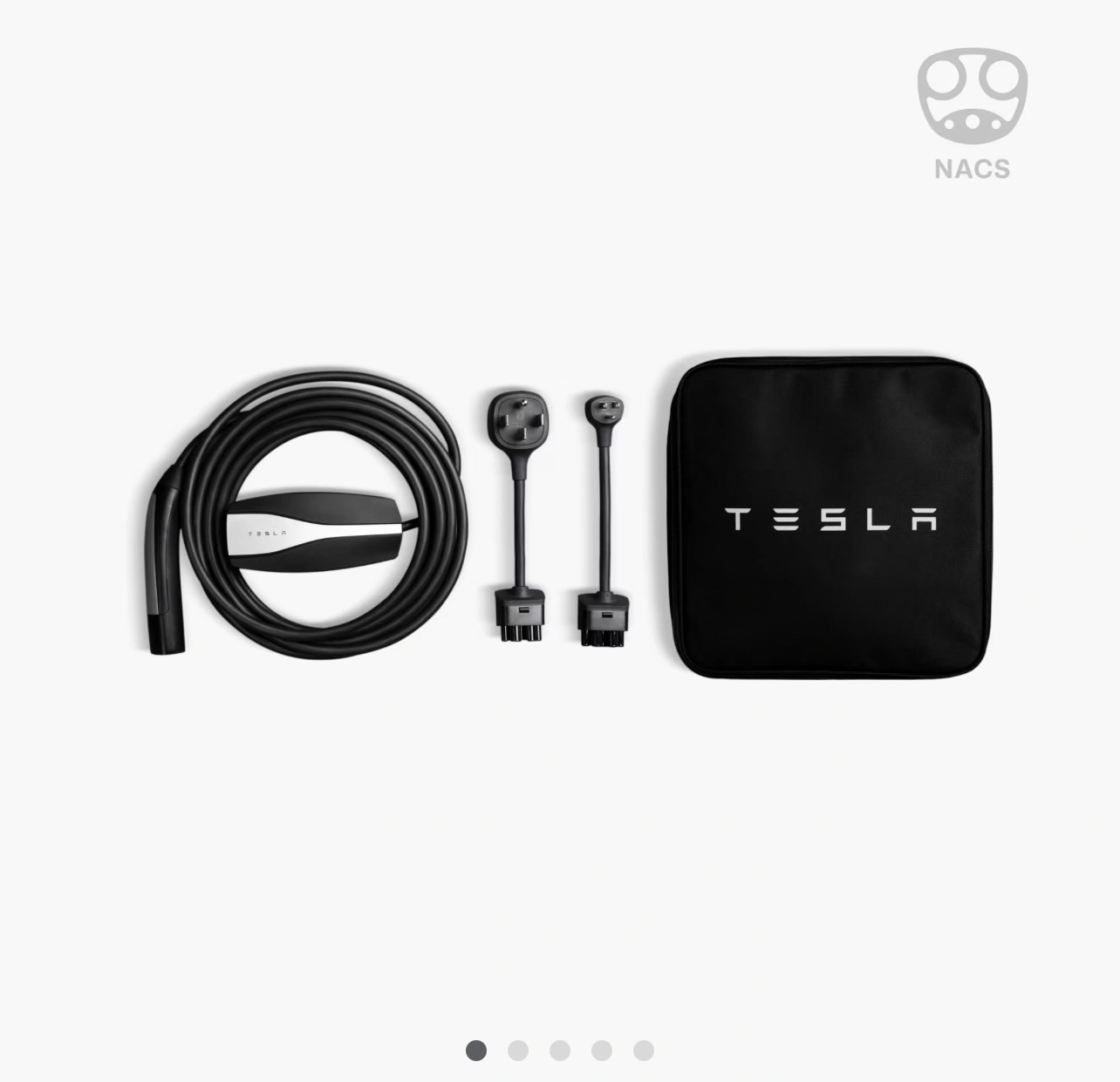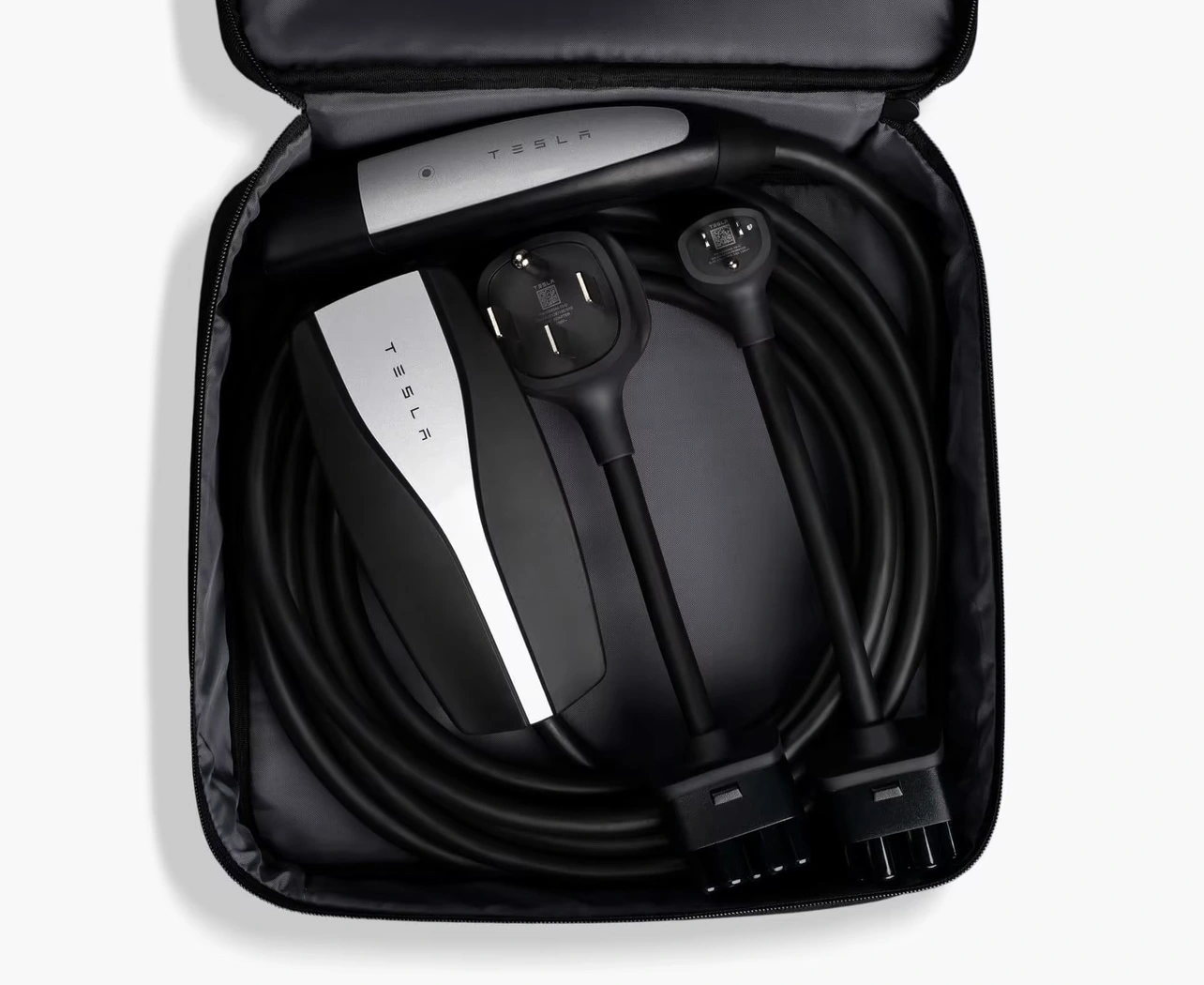 Includes the charging cable, carrying case, NACS adapter, and a household plug adapter.