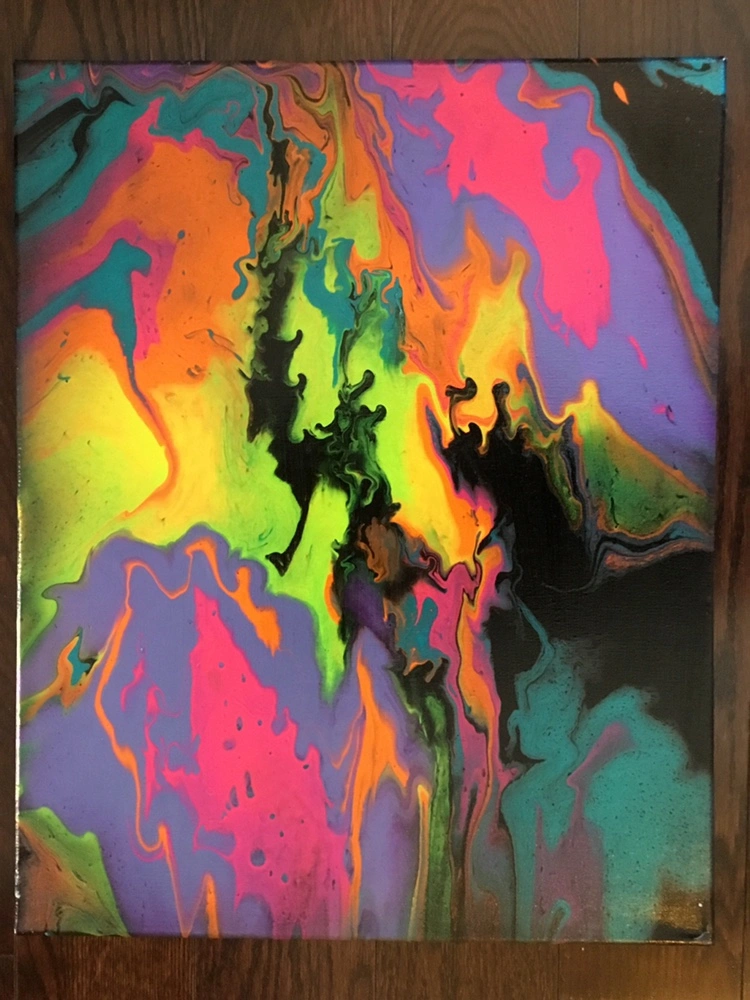 Original abstract acrylic painting. Hand painted and varnished with archival grade satin finish. Very unique and vibrant piece with neon colours on canvas. I can provide more photos if interested.