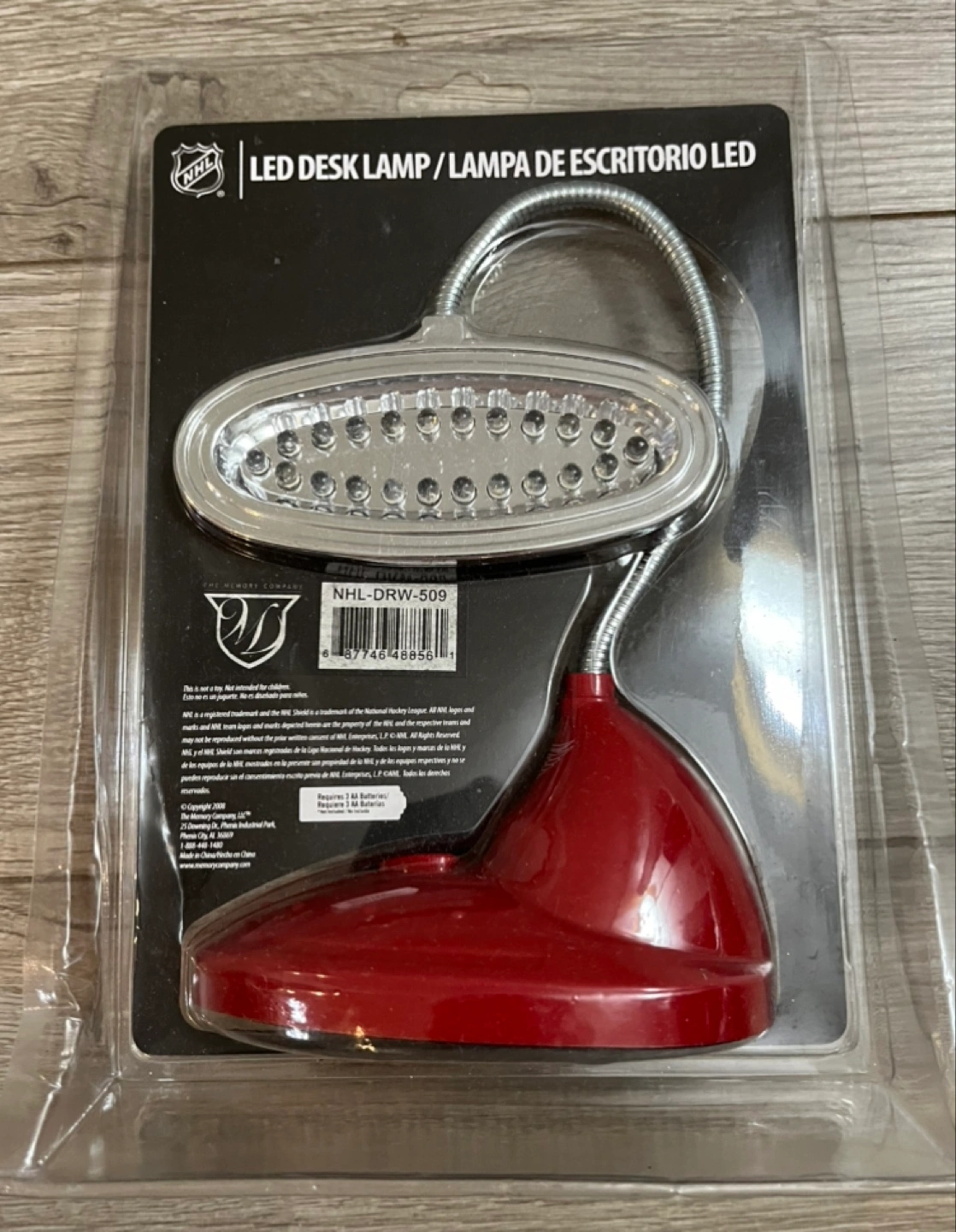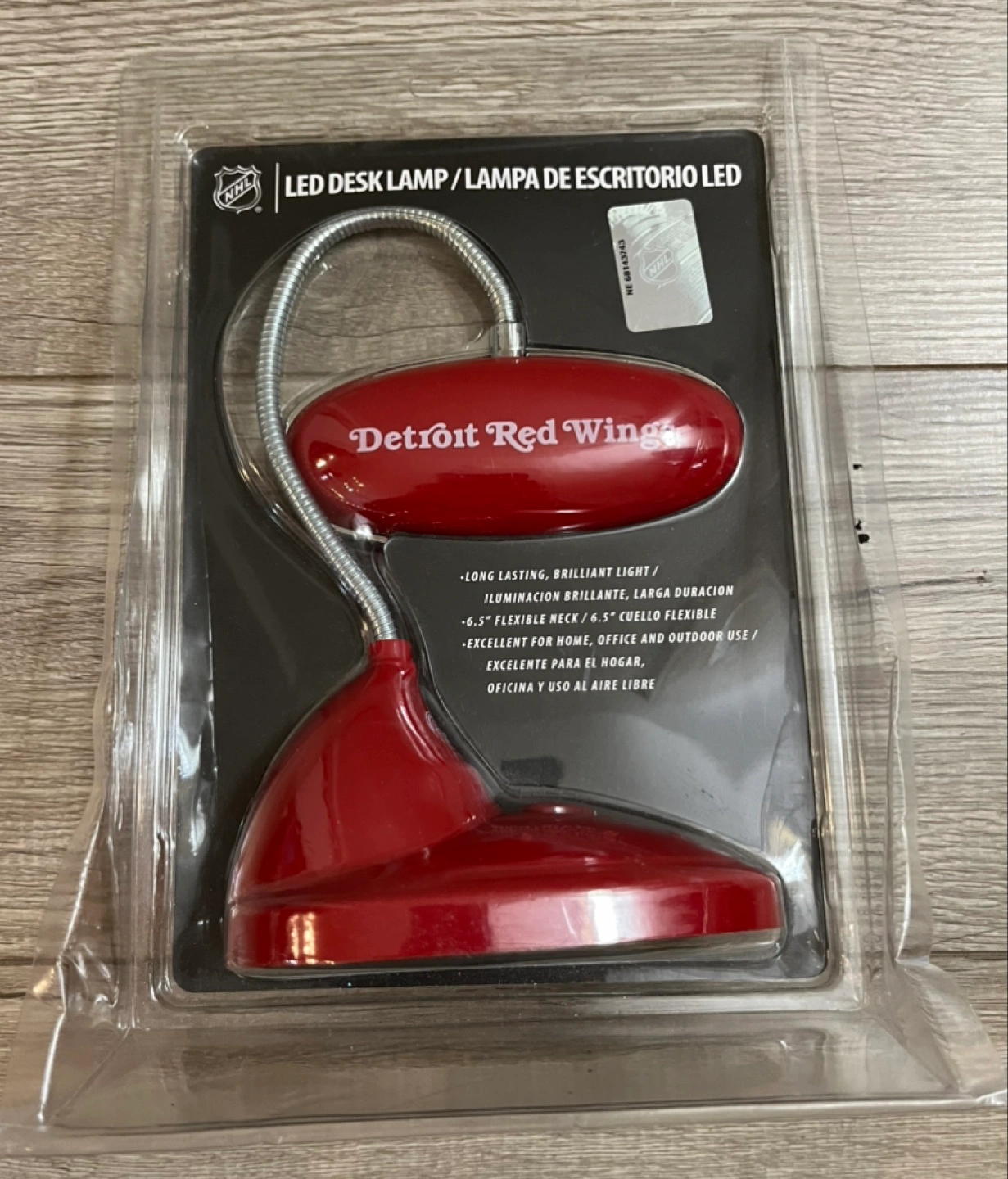 New, in box. Detroit Red Wings themed LED desk lamp. Long lasting, bright light.