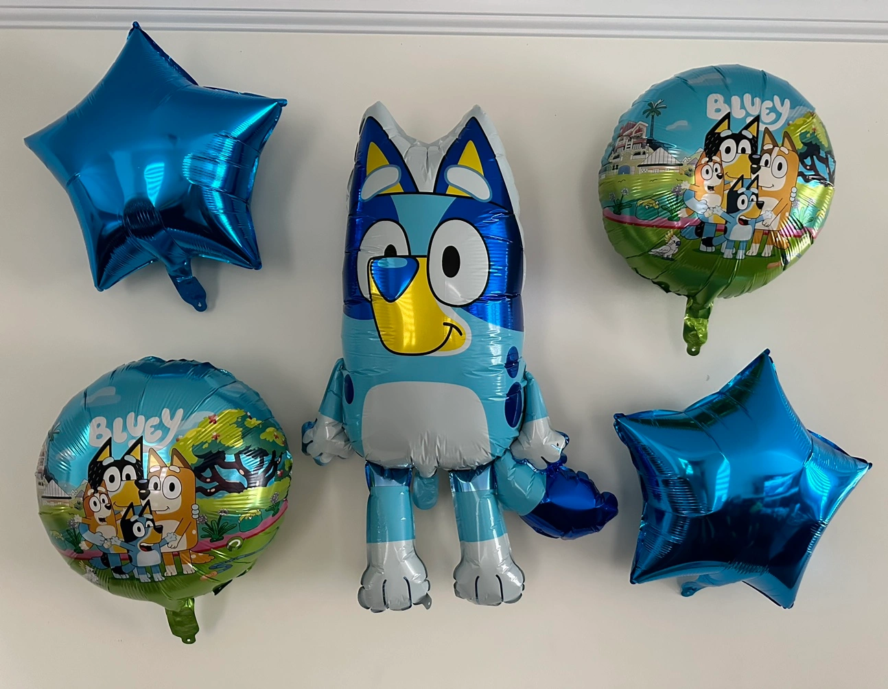5pcs set - NEW - unopened Bluey 18,11 x 26,37 inch (46x67cm) Round balloon 17,7 x 17,7 inch (45x45cm)