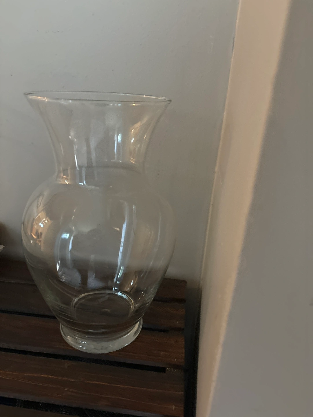 This vase is great for displaying your favourite flowers! It is tall and thin with a wide opening. It would look great in any home.