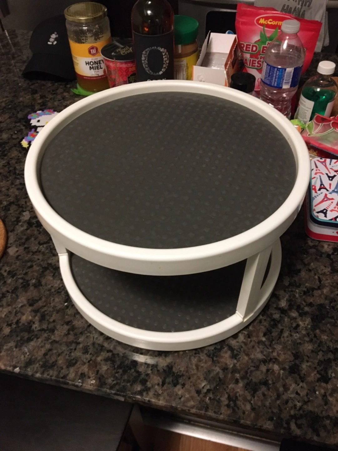 Lazy Suzan spinning rack for spices or miscellaneous counter top items. Reorganizing and donating to a new home