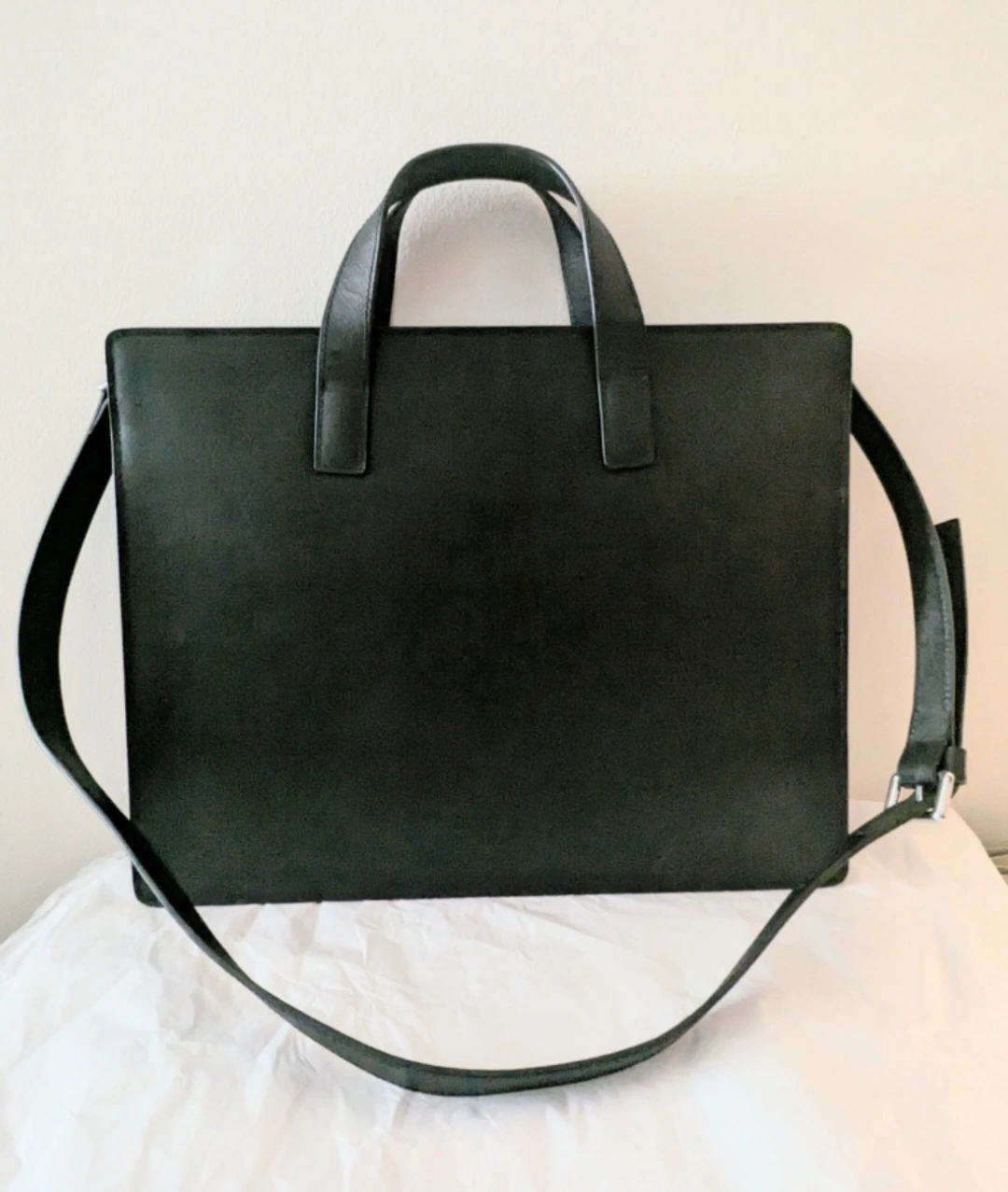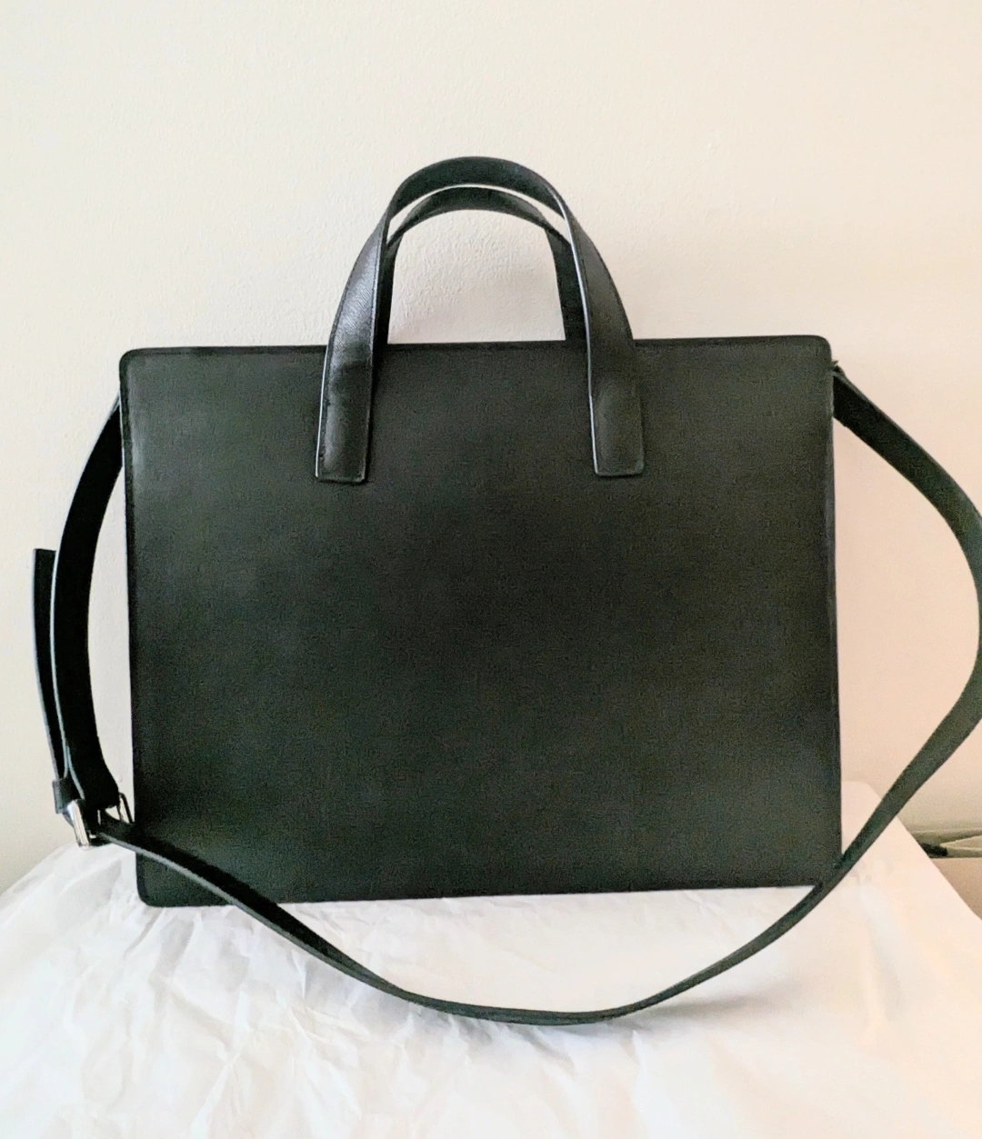 Black genuine leather briefcase with a detachable shoulder strap. Has separate compartments for laptop, phone, and extra zipper pockets inside. Very clean and gently used. Approximately 14.5" long, 12" tall, and 1.5~2" thick. Selling most of my stuff to declutter. Pick up only. Cash only. Reasonable offers welcome.