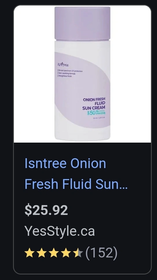 New A 50 ml bottle of Isntree Onion Fresh Fluid Sun Cream Expiration date: Jan 2027 Reason for selling: Excess product from photoshoot Payment: Cash (exact amount) or Interac e-Transfer