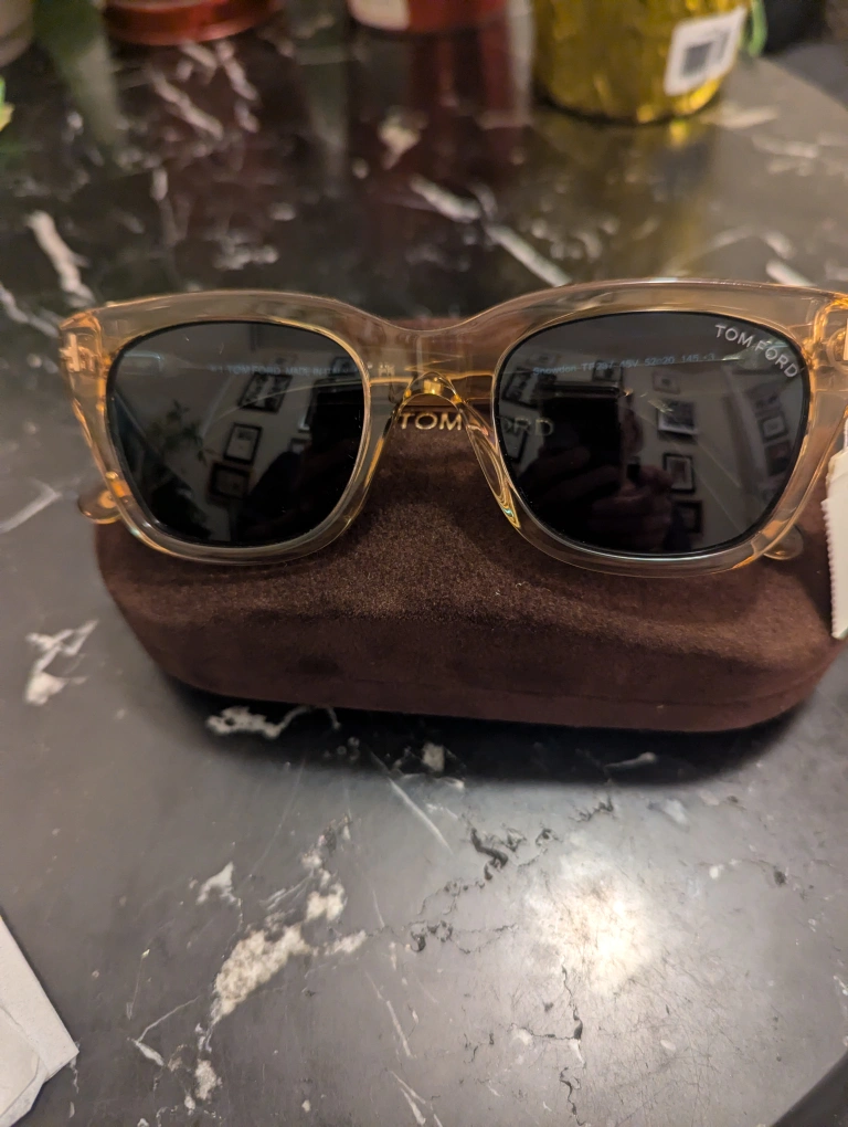 Brand new Tom Ford Sunglasses from Holt Renfrew. Beautiful amber translucent frame. Original retail price approximately $400. No lower offers, thanks.