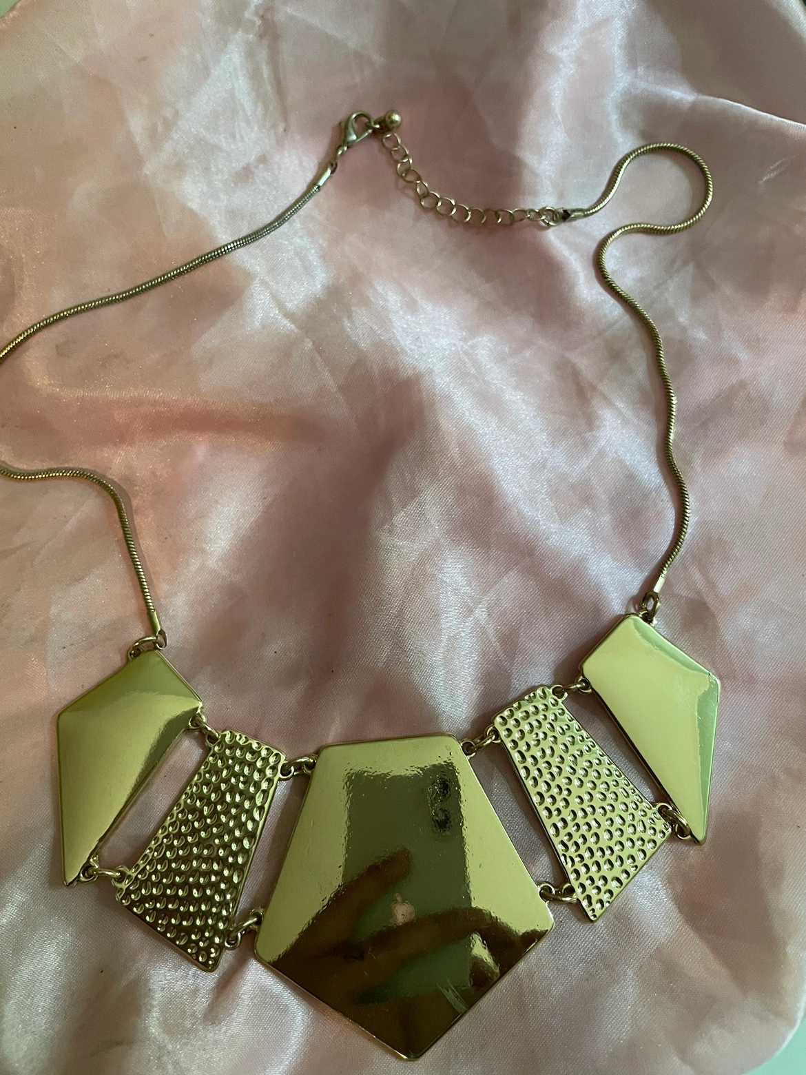 A gold chain necklace with a statement piece in the shape of geometric shapes In like new condition