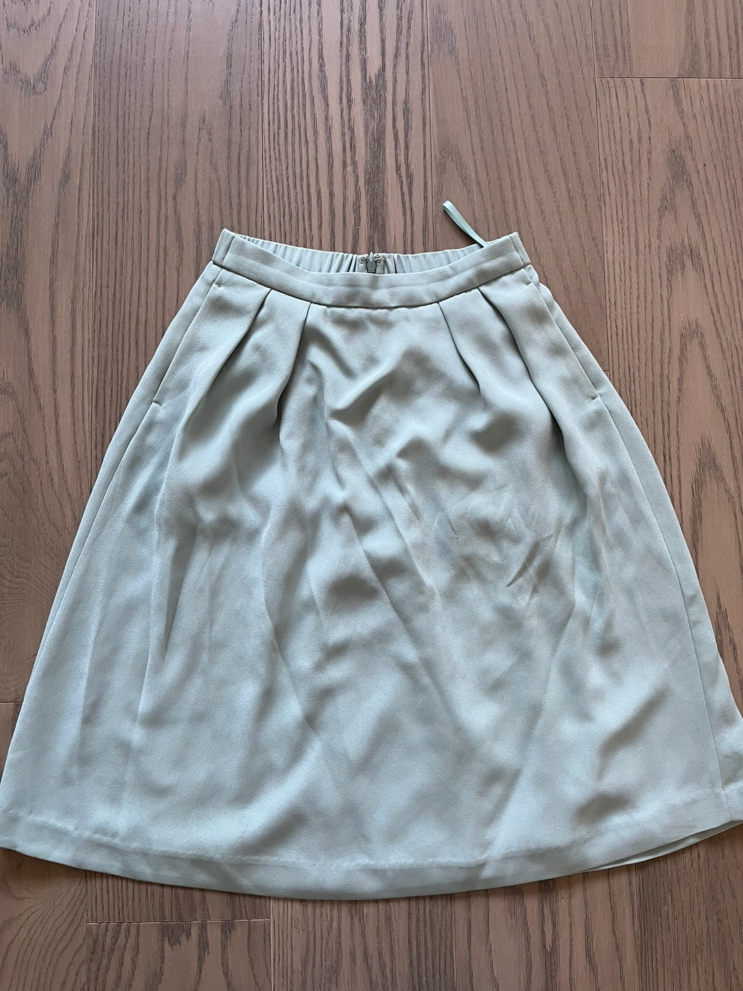 Light blue pleated skirt, size S. Zipper and hook closure in the back. Made of polyester.