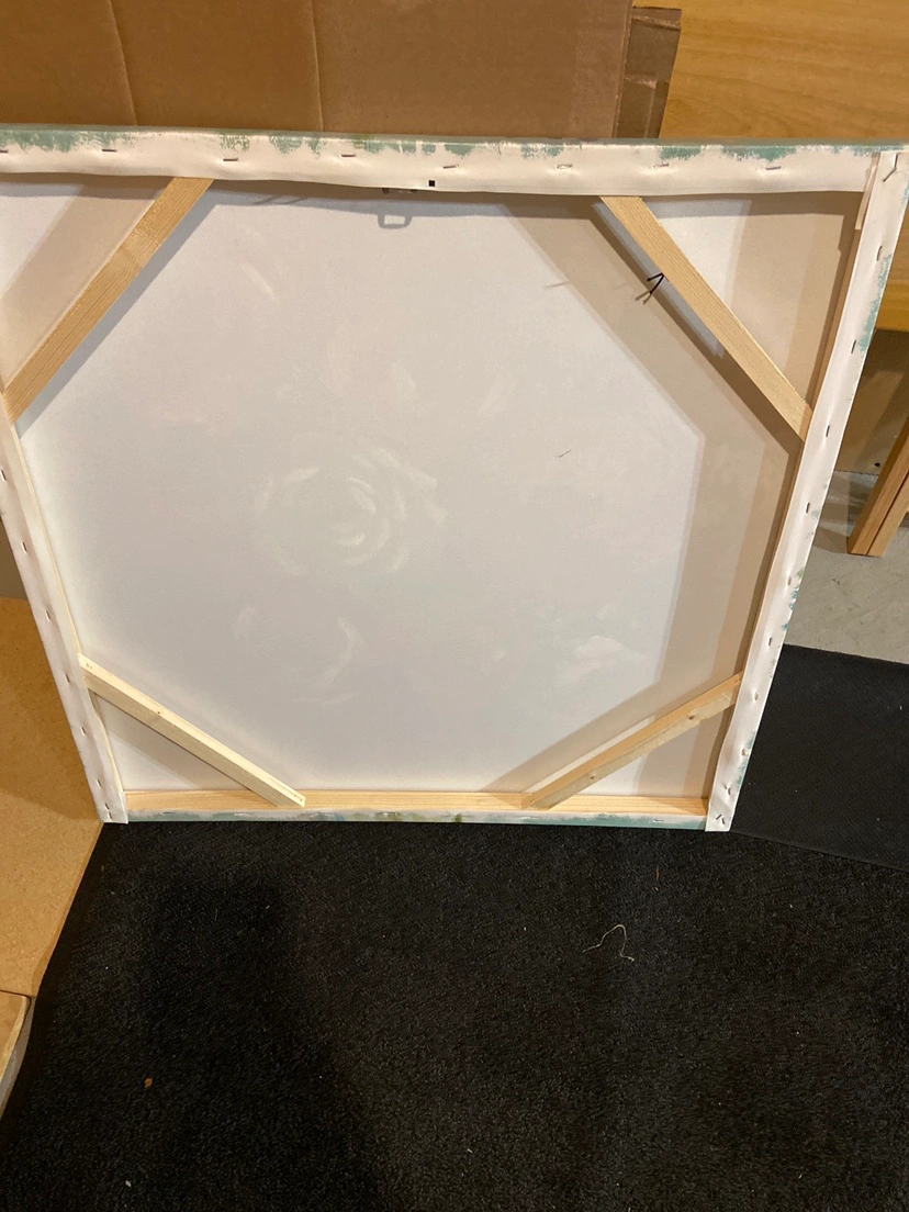Large beautiful canvas painting of a floral bouquet. The background colour is light green. Great for living room, hallway, bathroom etc.