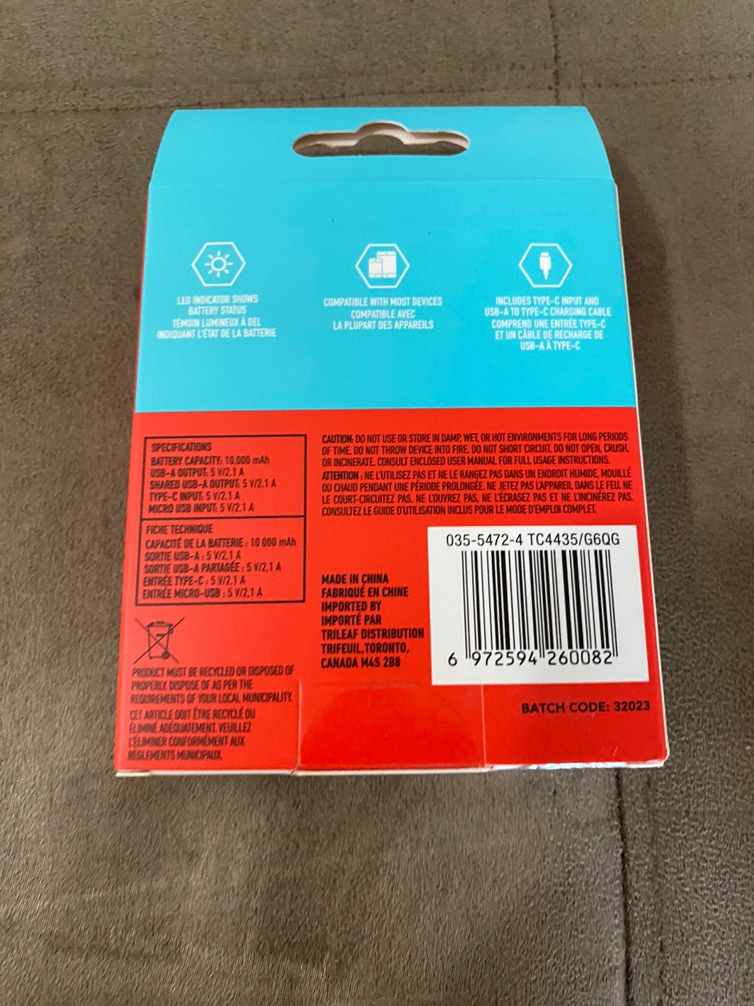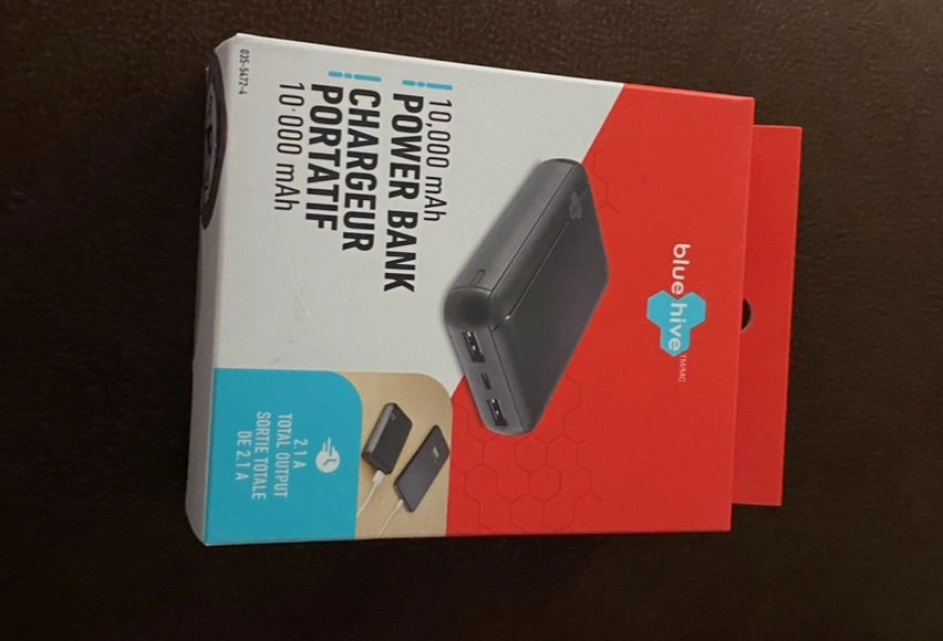 This is a 10,000 mAh power bank from the brand Blue Hive. It has a black exterior and comes in the original packaging.