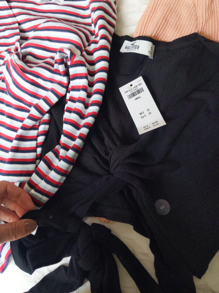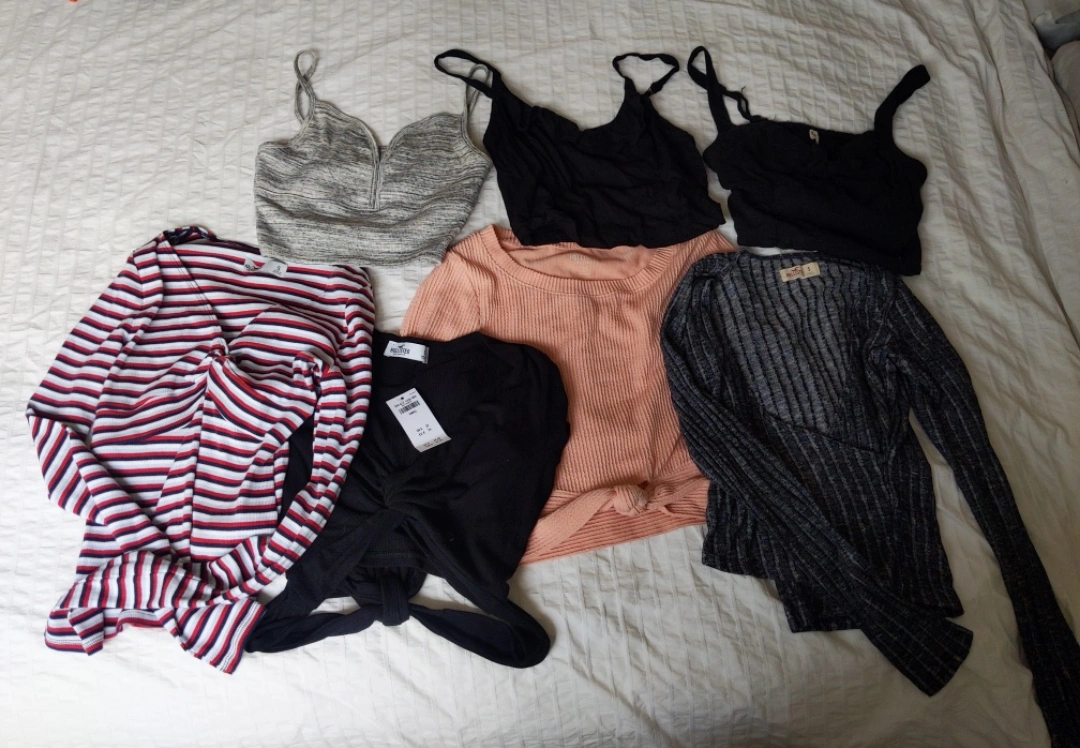 bundle of 7 Hollister tops/shirts all size small gently worn or NEW WITH TAGS (retail $33 for one item) must take them all pickup downtown near OCAD on McCaul st tags Hollister casual clothing women girls ladies shirts tops tanks wrap tags nwt school work out stripes black comfy stretchy small extra small