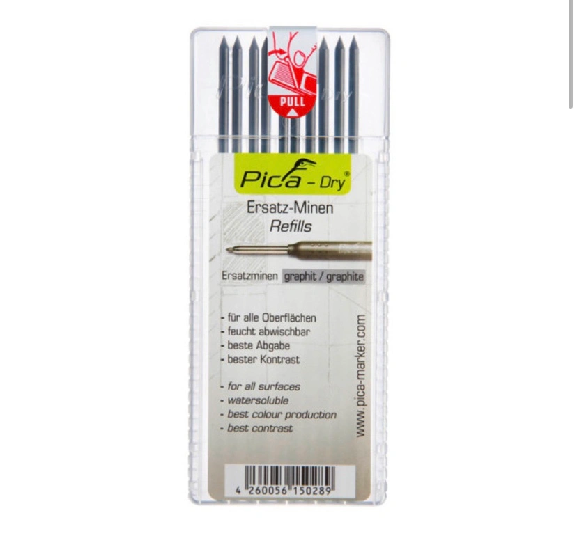 Brand new in package! Multiple available Pick up at Bathurst and Lawrence Offers welcome! Pica Dry Refill Leads Marks and writes on all material surfaces Also for dusty, raw, oily, wet and dark surfaces Automatic lead support, stainless steel tube Sharpener built into the front of the cap Convenient quiver cap with special clip Refill leads water-soluble in different colours Refill leads water jet resistant in different colours Diameter of leads 2.8 mm Ten Pack Replacement Leads