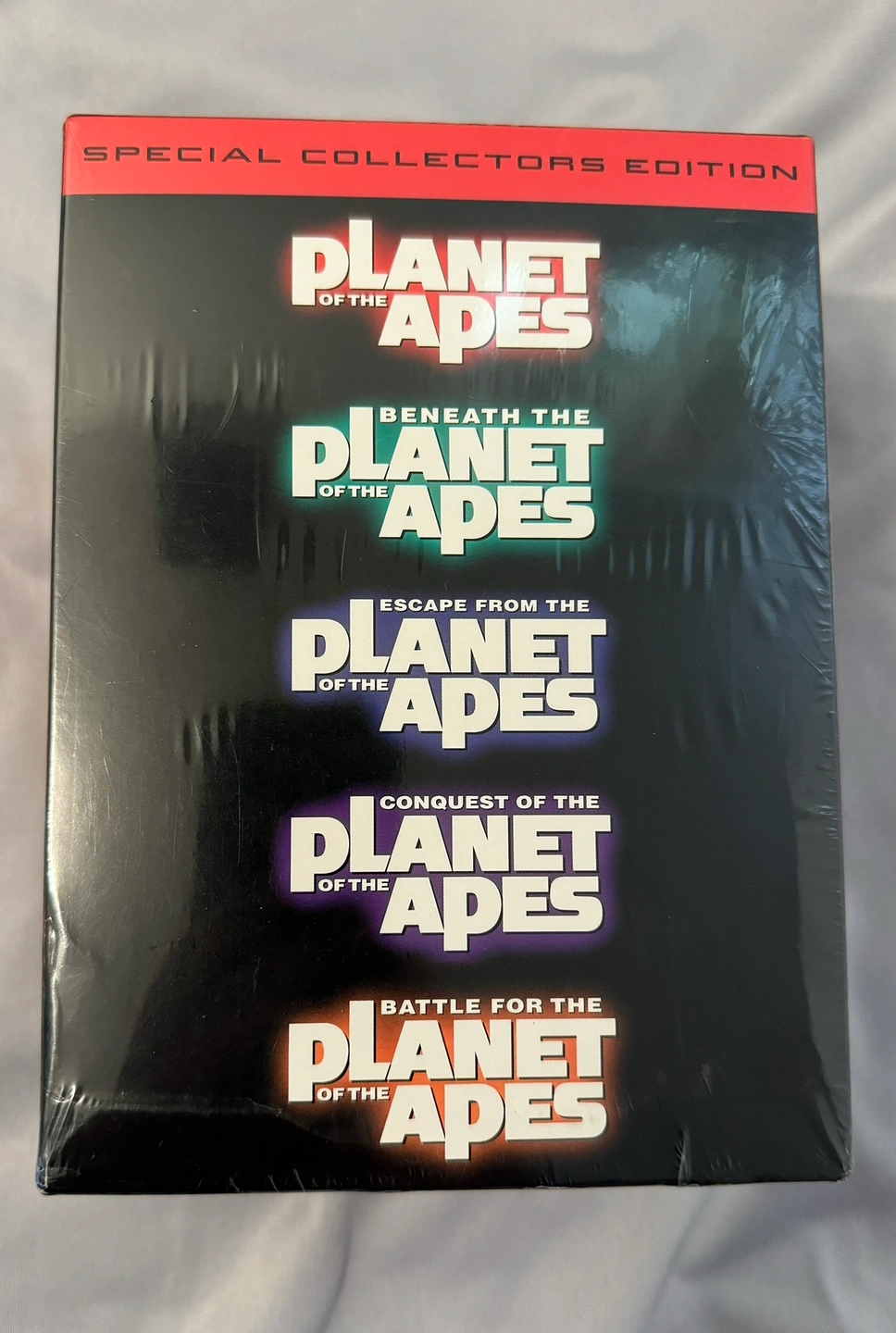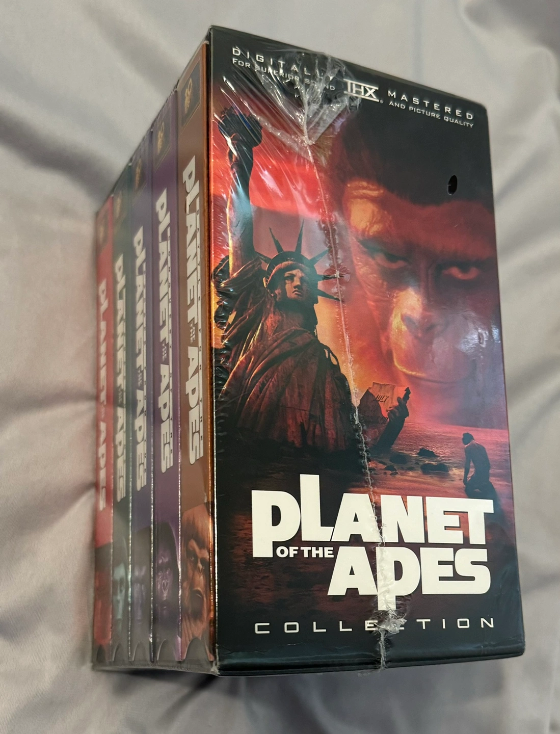 Brand new and sealed. This is a collection of the original Planet of the Apes films on VHS. The collection includes: Battle for the Planet of the Apes, Conquest of the Planet of the Apes, Escape from the Planet of the Apes, and Beneath the Planet of the Apes.