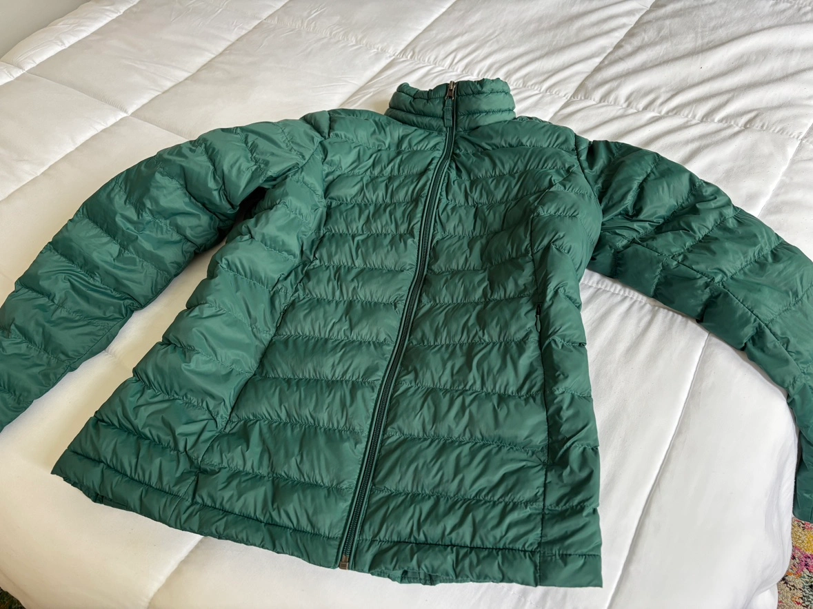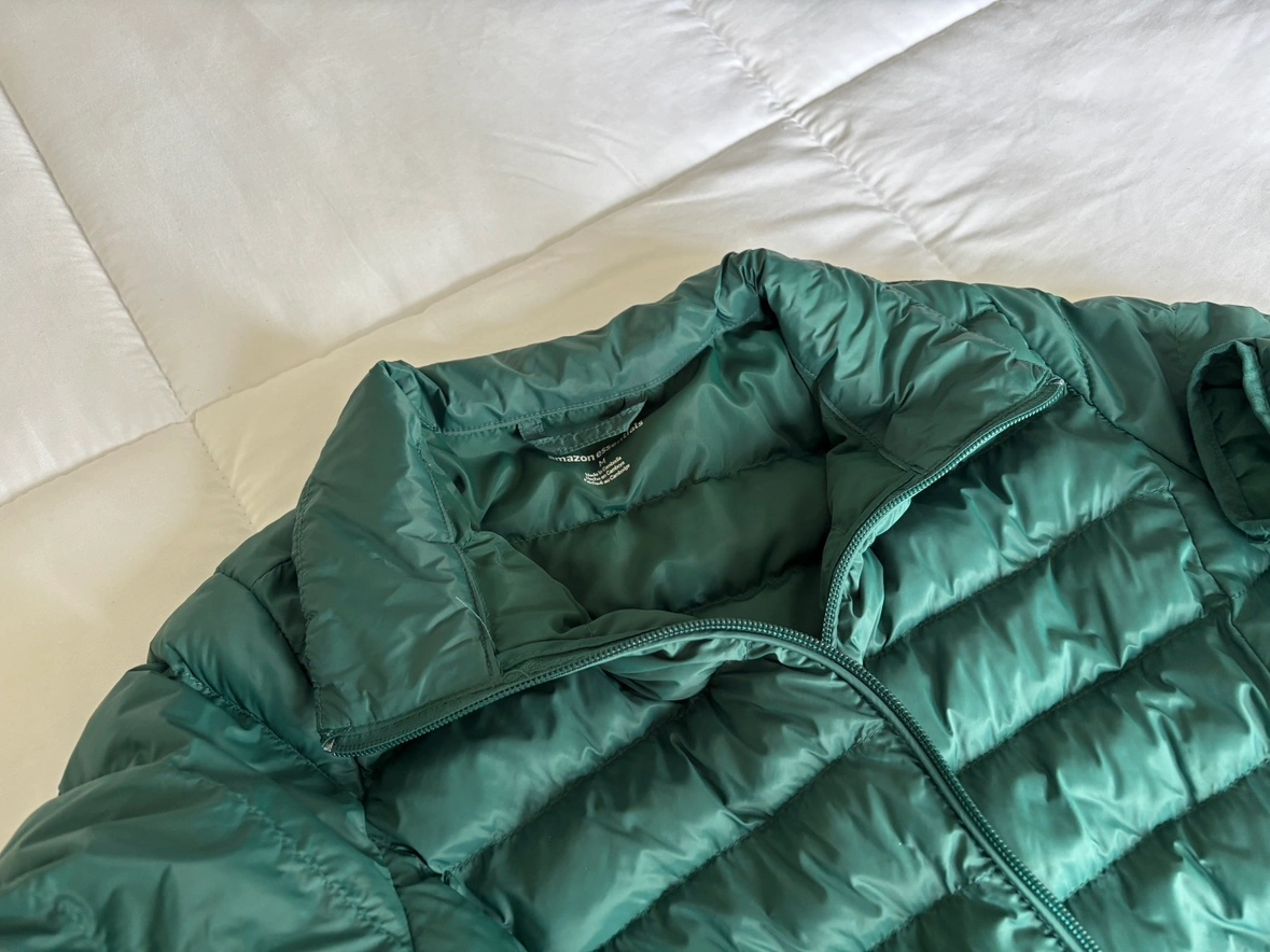 Warm, stylish, turquoise puffer jacket from Amazon. Worn maybe two or three times. Suitable for cool fall or mild winter days. Packs into compact bag for easy travel/storage! Original retail price: $54.90 CAD + tax https://www.amazon.ca/Amazon-Essentials-Womens-Packable-Puffer/dp/B08SRQK1ZD?th=1&psc=1 Can be inspected during pickup. Please see my bio for payment and pickup details!