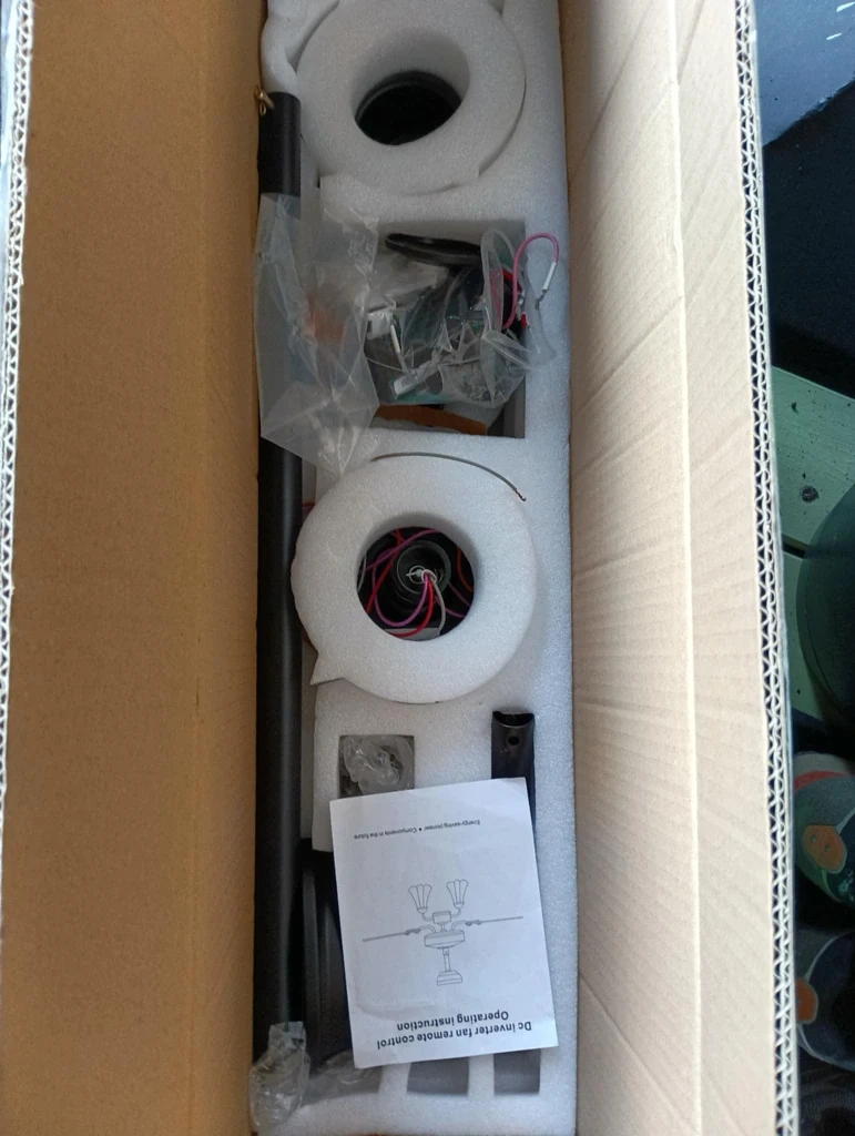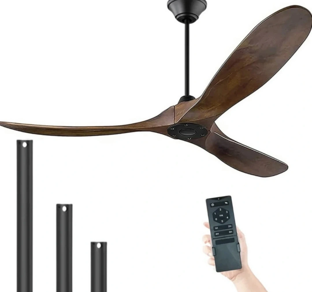 Modern, three-blade ceiling fan with a remote control and multiple downrod options.