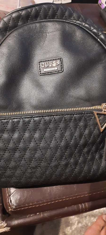 Clearing out the wife's closet, selling her small Guess Leather Backpack. Stylish, with lots of pockets.