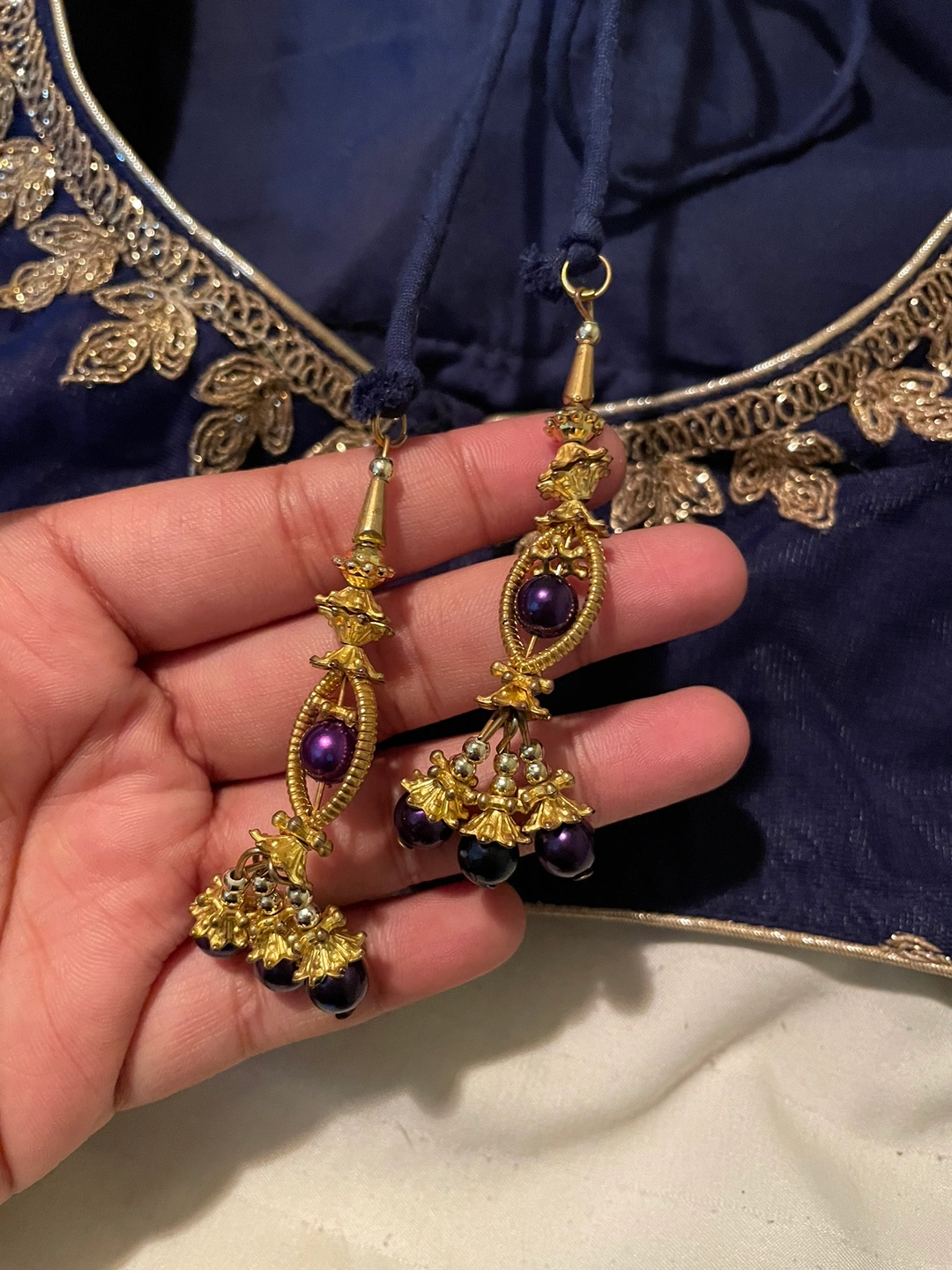 Beautiful blue and gold embroidered blouse. It has a tie up back and It's a great piece for a special occasion! In like new condition, only wore once!