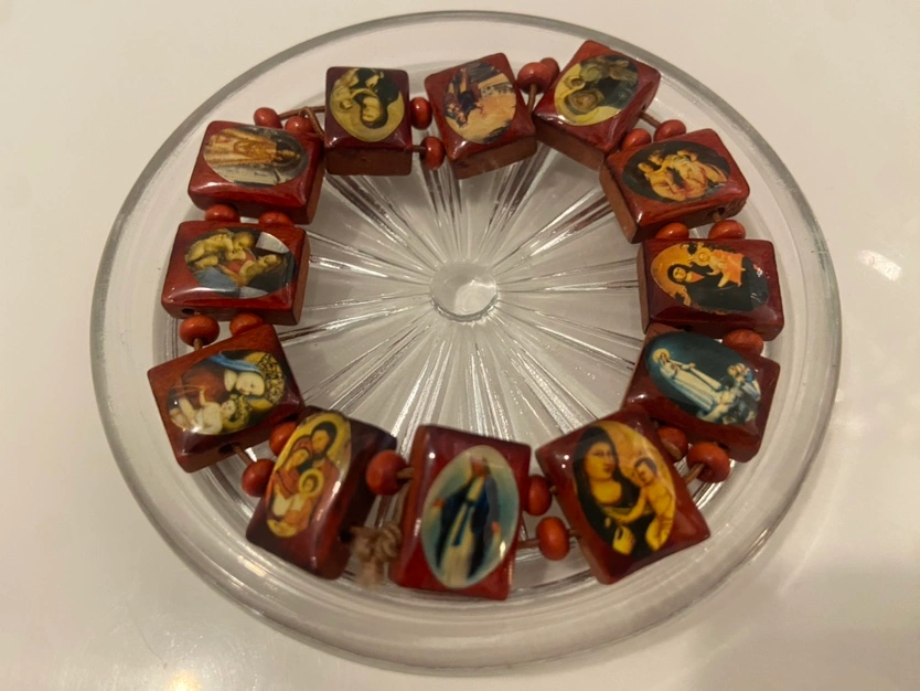 IT IS AVAILABLE. I WILL NOT ANSWER THIS QUESTION :) The elastic needs to be replaced, as it's frayed and stretched, but the beads are perfect. Also, please check out my other listings if you're interested :)