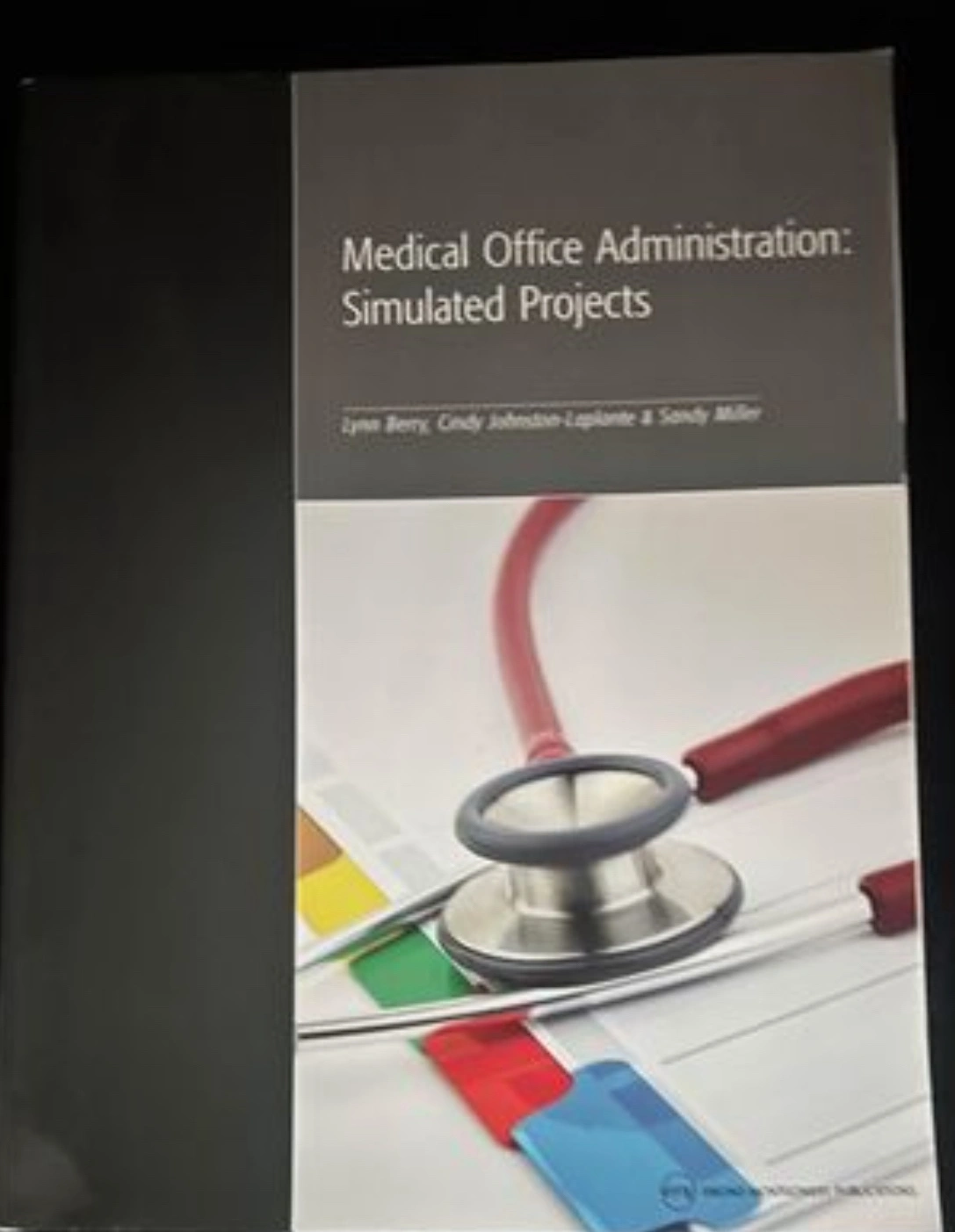 A textbook titled "Medical Office Administration: Simulated Projects". Never been used. Original price was $88.99 plus tax. Selling to lessen my books as I am not using any longer.