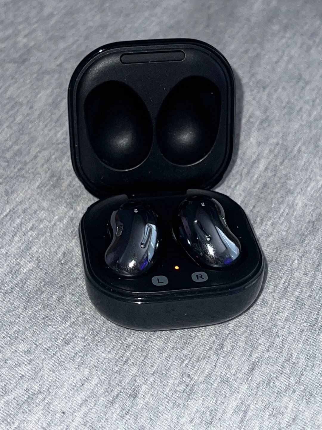 Samsung Galaxy Buds Live In-ear noise cancellation Features: - powerful 12pi speaker - IPX2-rated water resistance - built-in smart voice assistant - up to 22 hours listening on a single charge Selling for only $127 Retails for $203w/tax No visible scratches Barely used and works in perfect condition