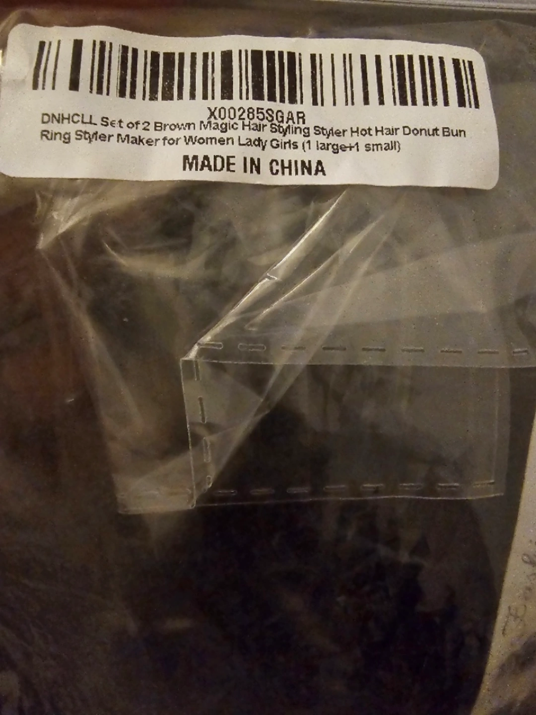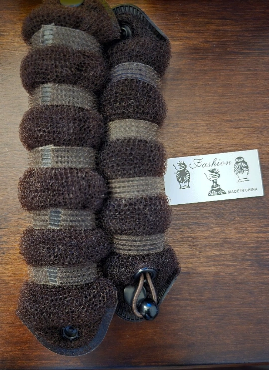 Two brown hair donut bun stylers, one large and one small, for creating a variety of hairstyles.