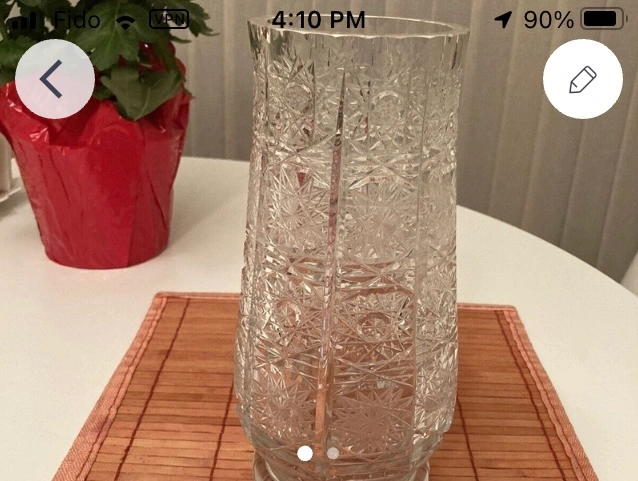 A beautiful crystal vase with intricate details from family heirloom. Last picture shows similar item new price.