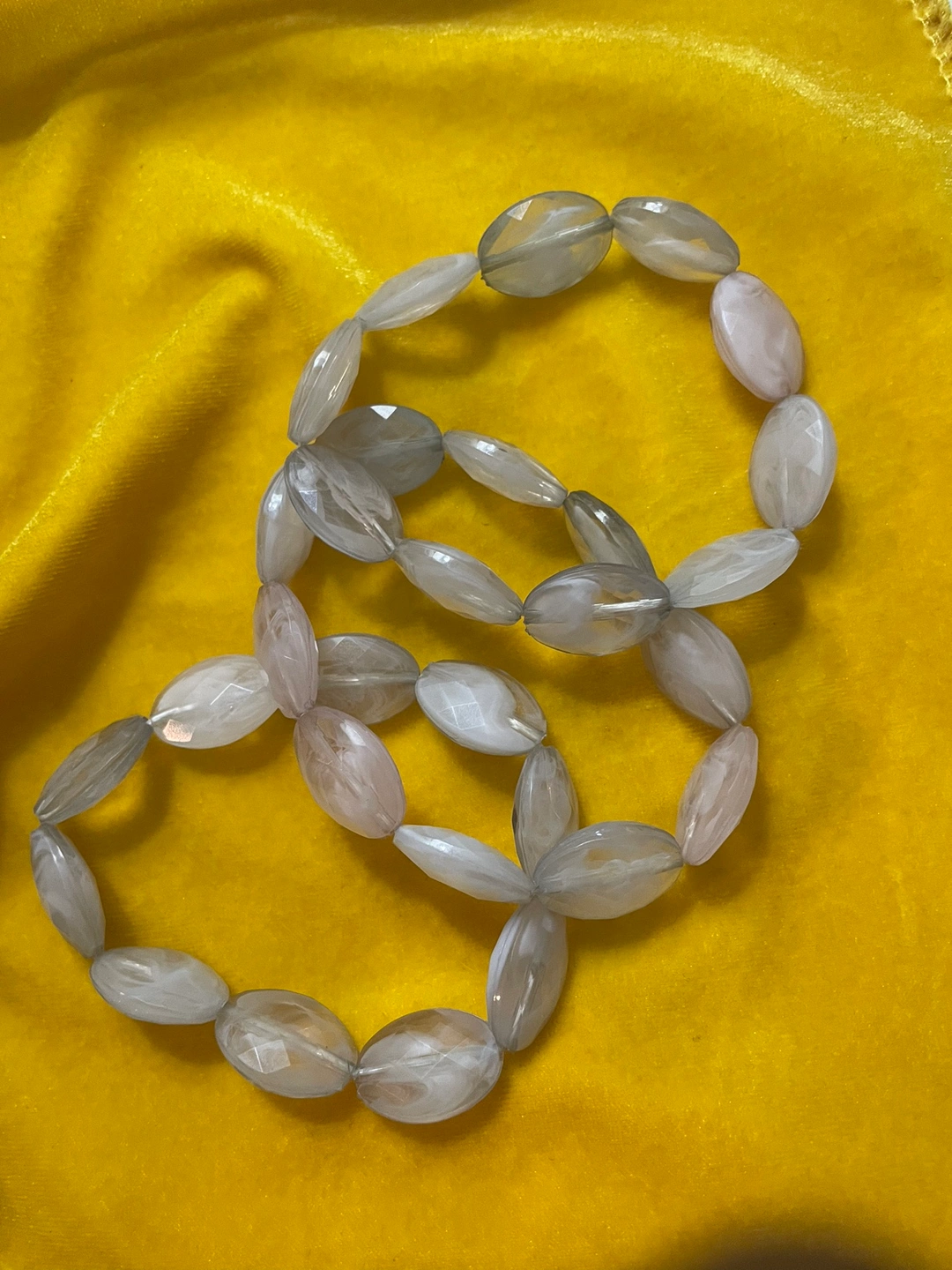 3 set beaded bracelets Like new condition Never worn them since buying them They are a white/grey colour with a iridescent shine