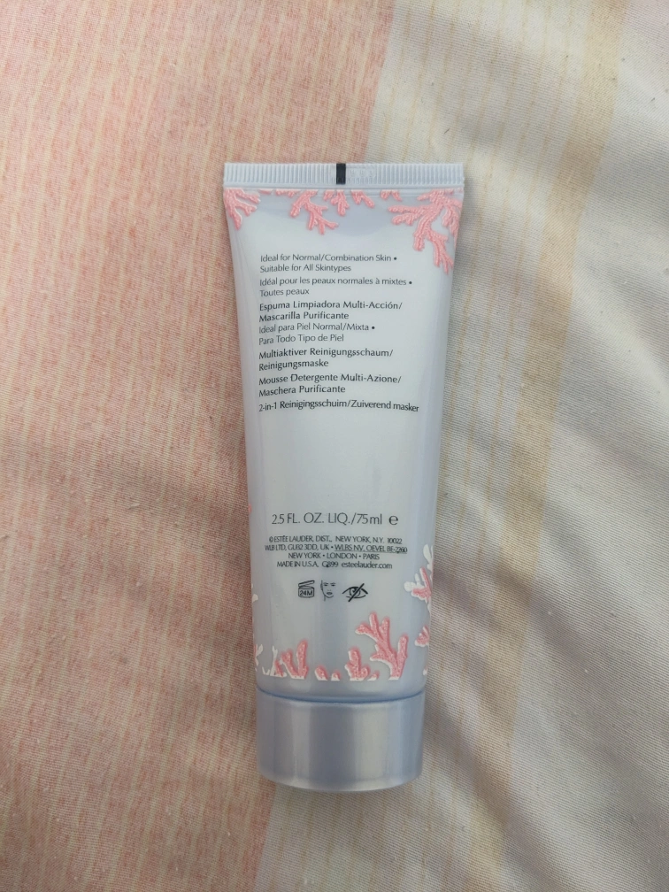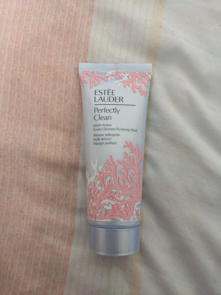A travel-sized tube of Estee Lauder's Perfectly Clean Multi-Action Foam Cleanser/Purifying Mask. 75ml/2.5 Fl oz