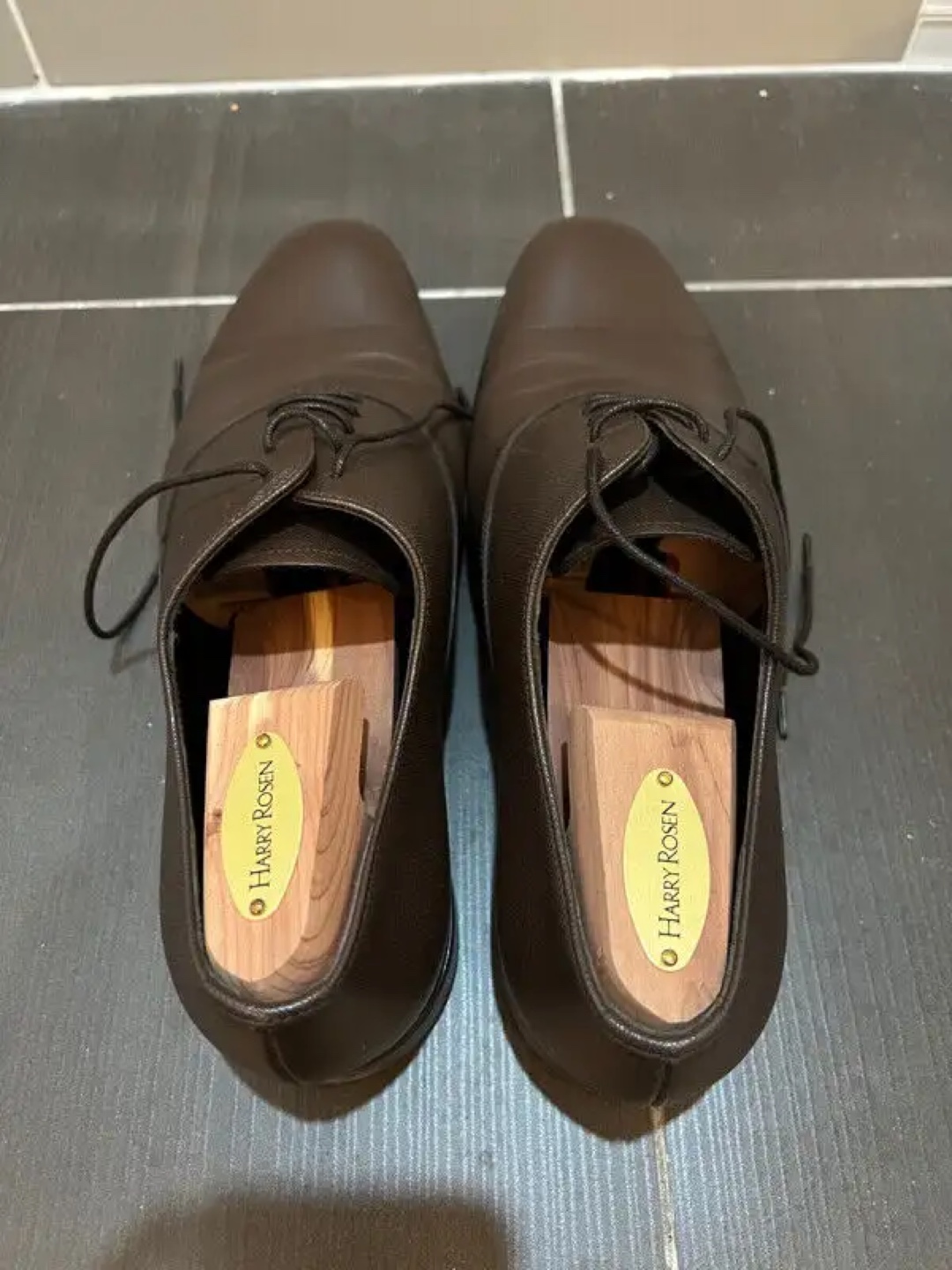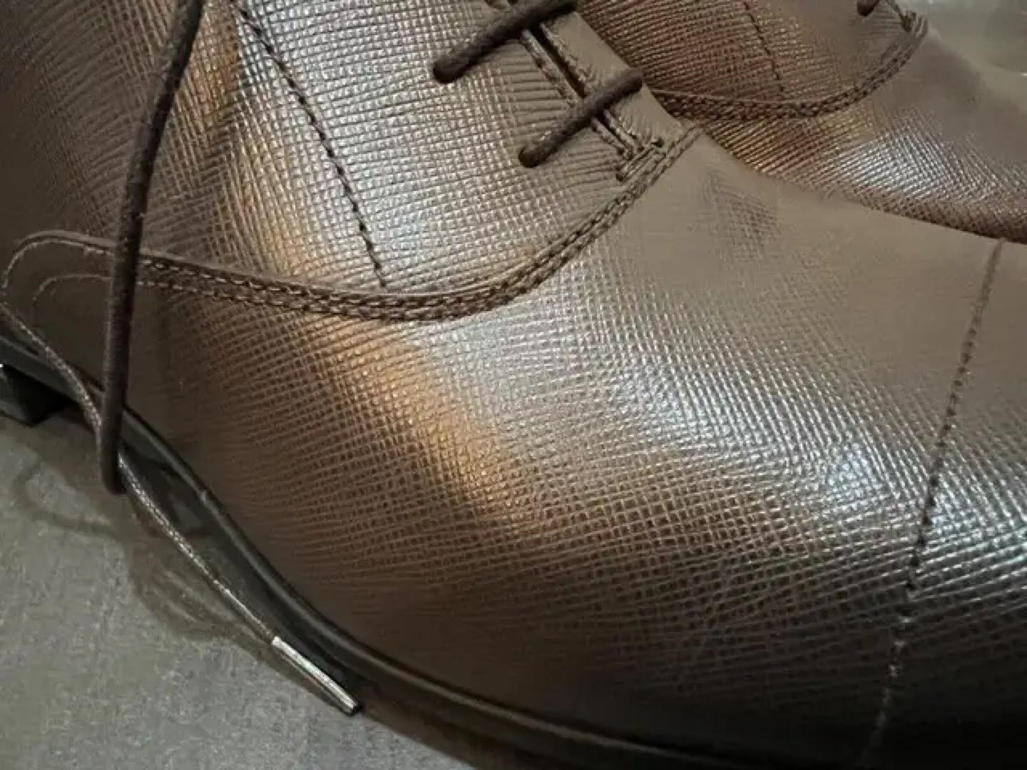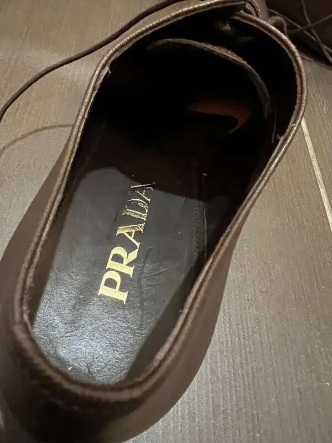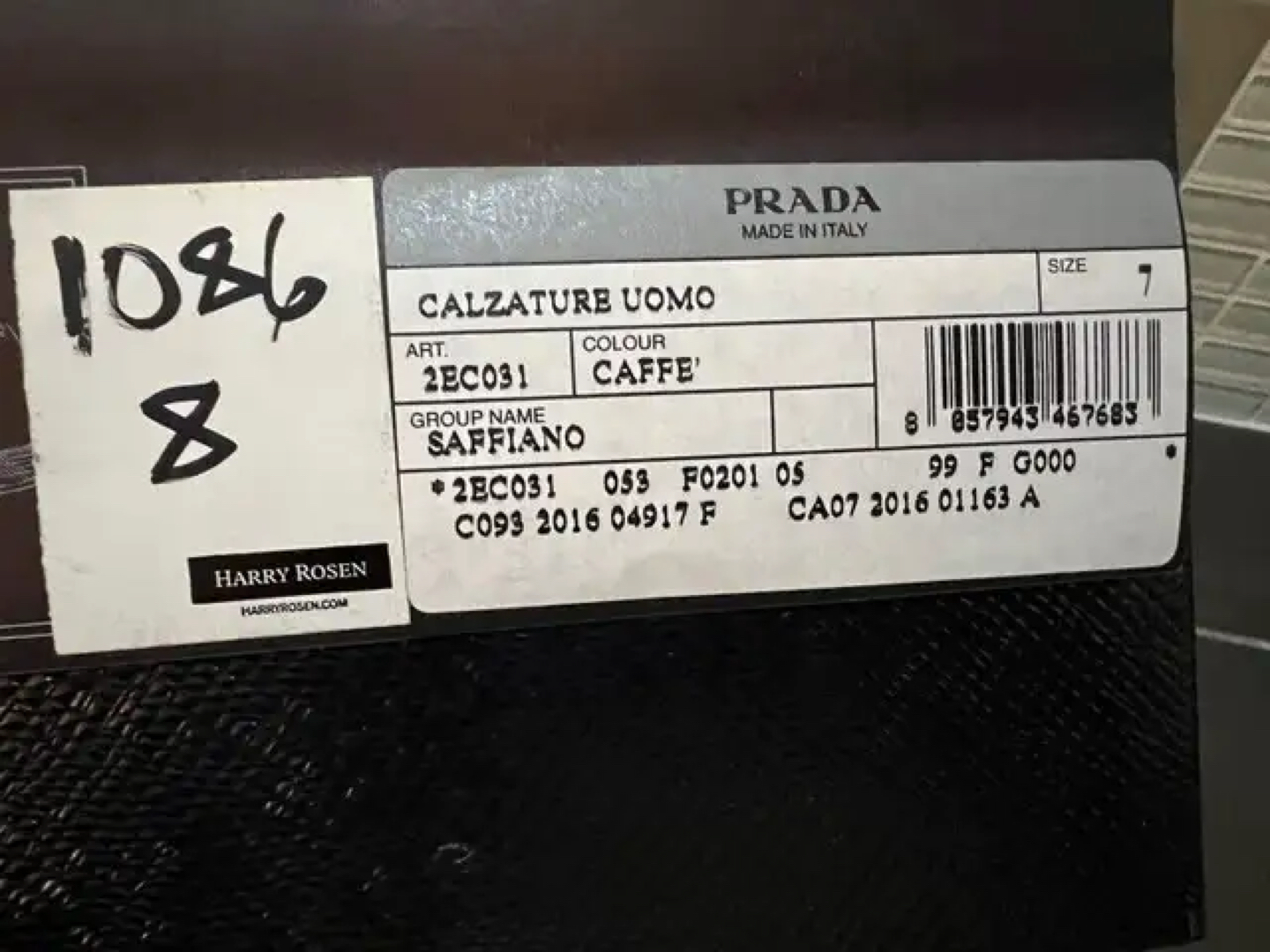 Like NEW Prada Calzature Uomo, Saffiano Leather, Colour Caffe (Brown). Fit like a Men's 9-9.5. Includes Harry Rosen cedar wood show trees. Come try them on at Front Street East & Church Street.