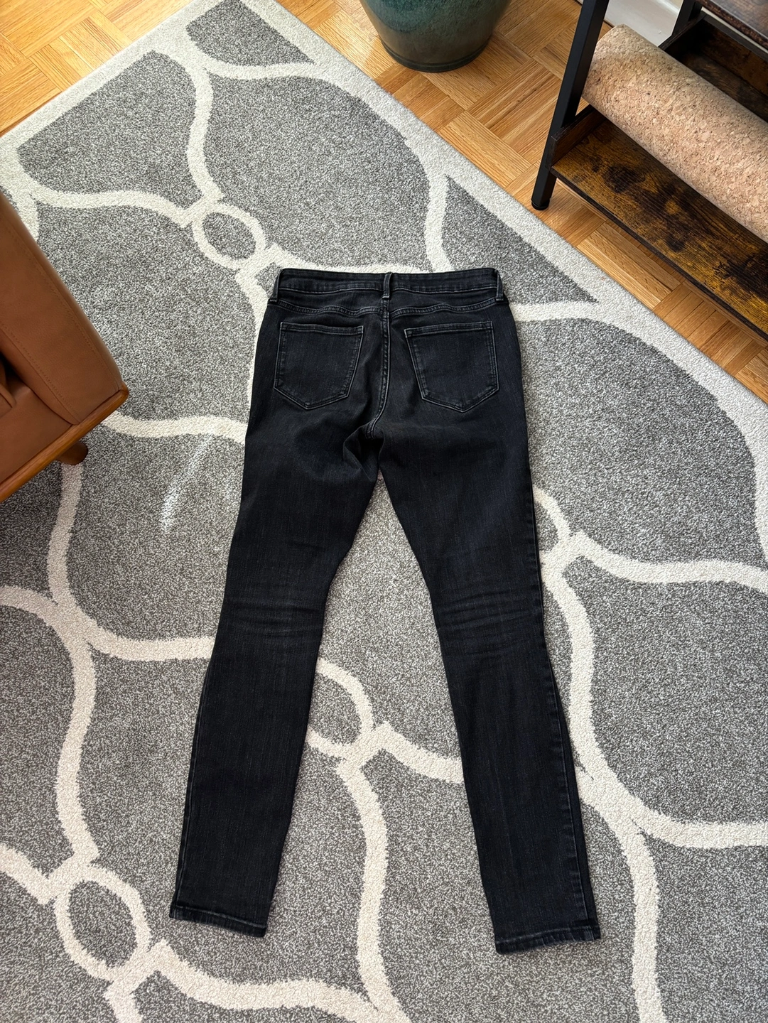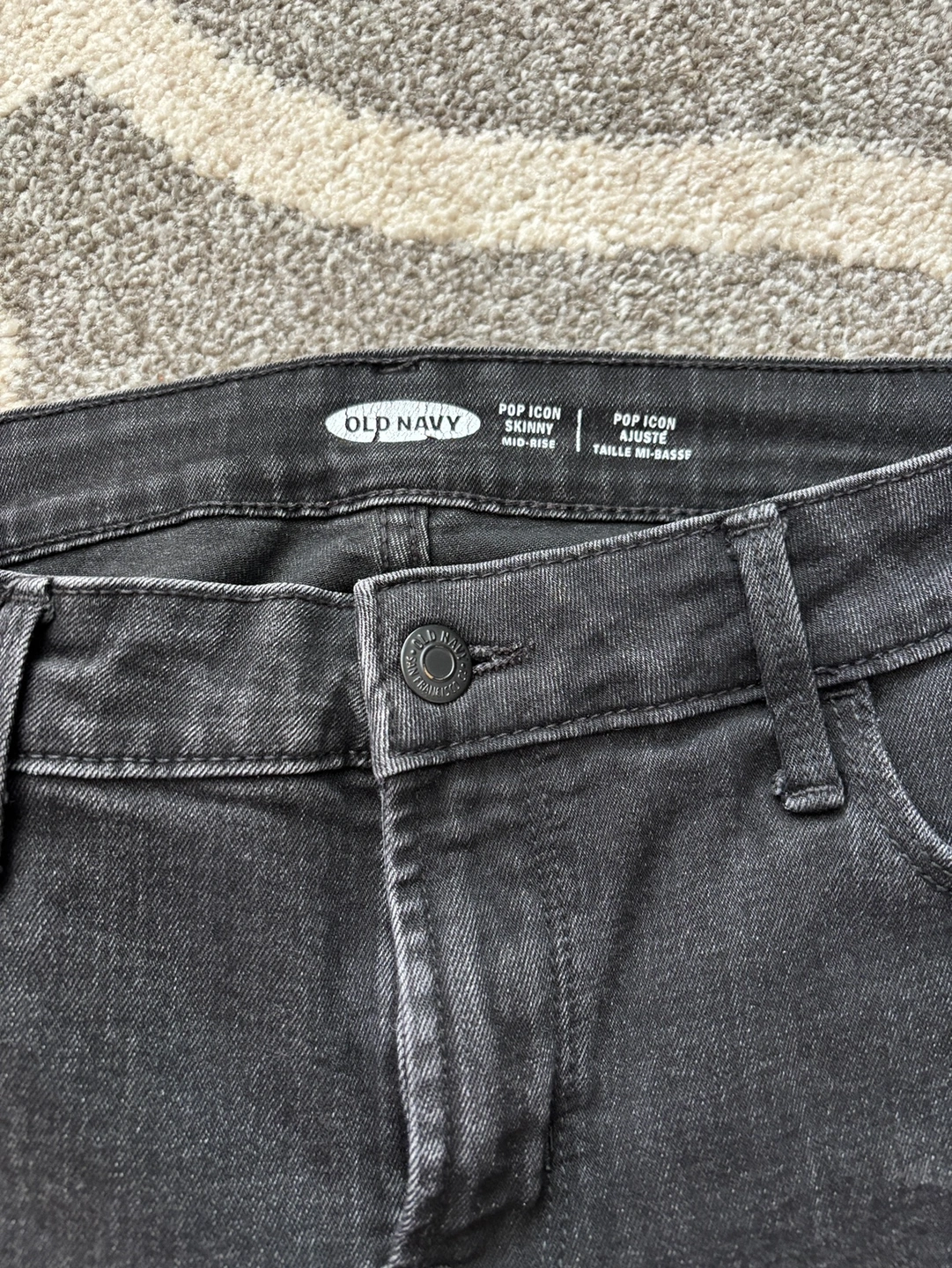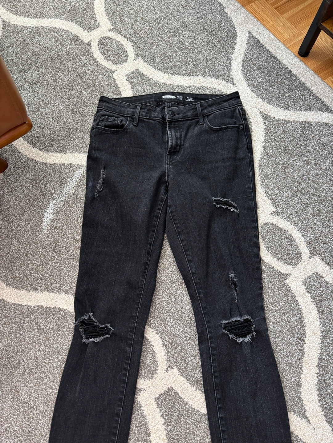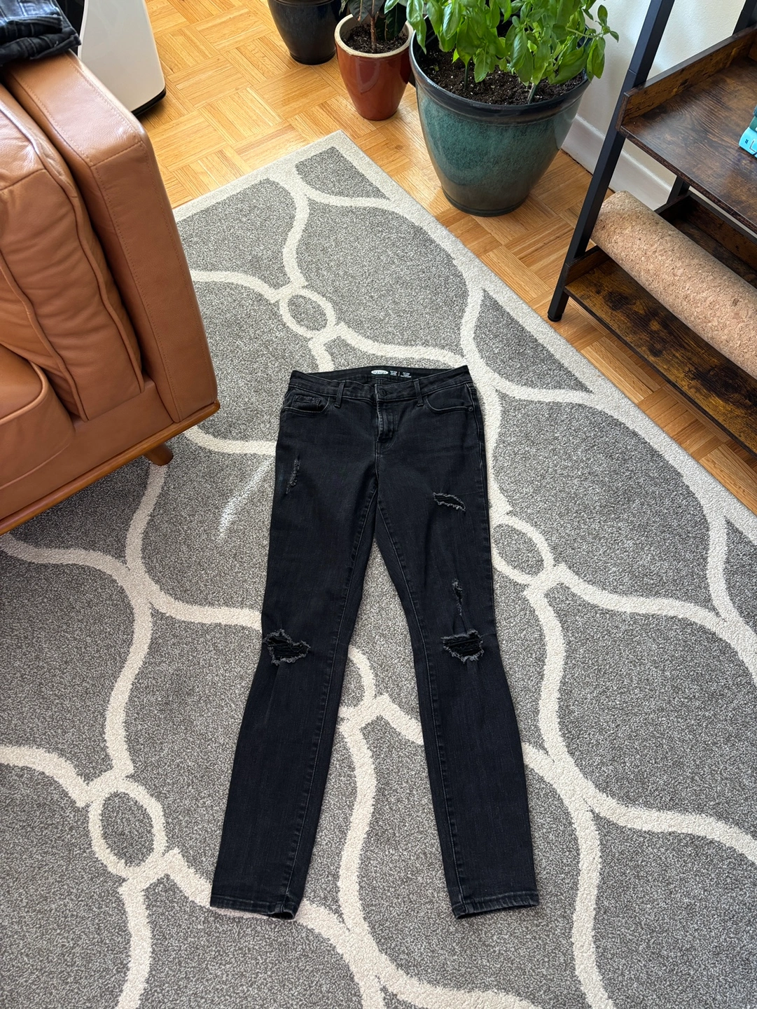 Black distressed Pop Icon skinny jeans from Old Navy. Size 6. These jeans have a low rise and are a great fit. They have some distressing on the knees and are perfect for a casual look. Cash only. Pick up at RBC Bathurst and Sheppard or see my bio for other location options! I’m available to answer any questions :)