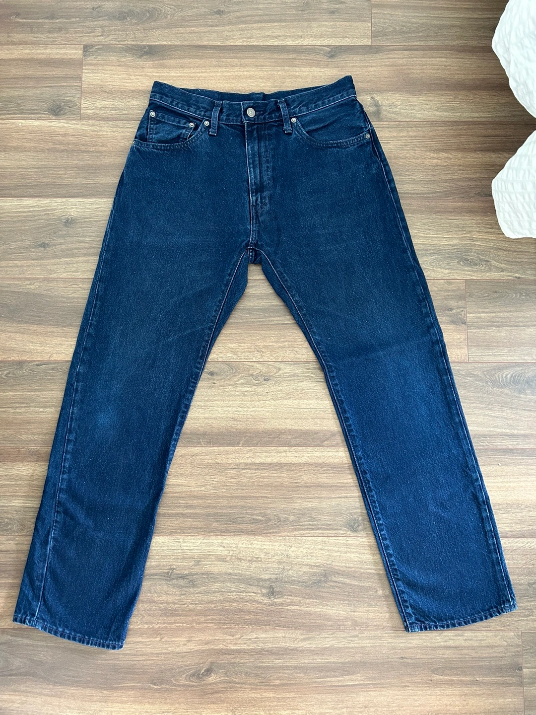 Men's Levi's 551 Z Authentic jeans in a dark blue wash. The jeans feature a straight leg fit. These are in a great condition. They have been washed just twice. Please see photos for condition. Original Price approx. $120. IYKYK