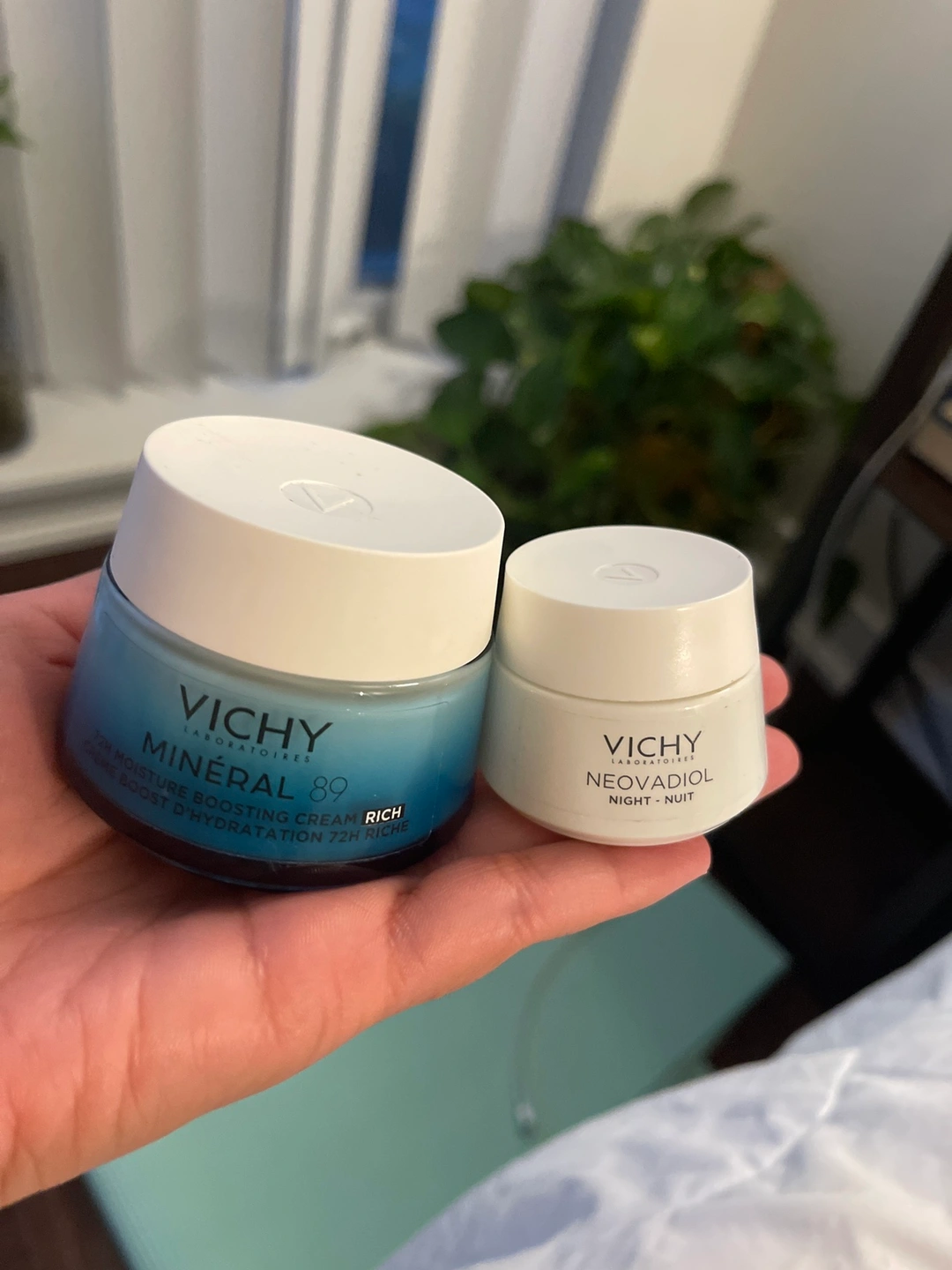 Vichy Mineral 89 and Vichy Neovadiol Night Cream. Opened, about 55% full or so. Stopped using as they were not for my skin type.