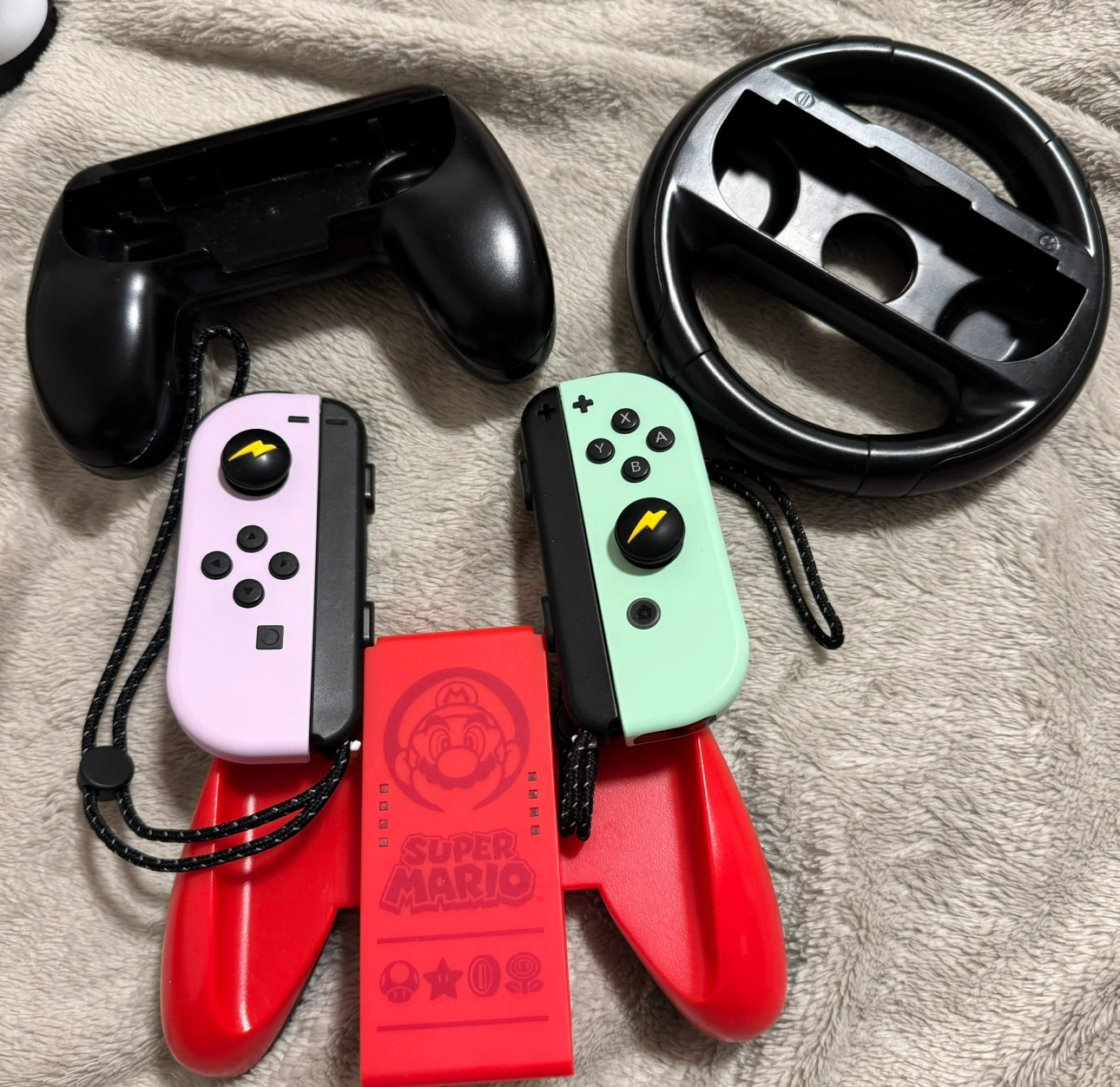 The Joycon includes a steering wheel, a Mario comfort grip and extra base