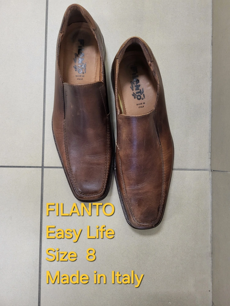 Filanto Easy Life Real Leather Shoes Size 8 Brown leather slip-on shoes by Filanto, size 8. Made in Italy. Original price is way more + Tax Here Price is the lowest/firm to go away faster. If like please call/ text for faster response. 647 855 6217 NOTE: if u like, please see my other ad postings. like,Leather Shoes, Dress Shirts,pants, Jeans, Tennis/Squash Rackets, Exercise/Bike stuff and more….. Mostly Brand Name stuff New or in New Condition to go away in about half price. Thanks for your time.