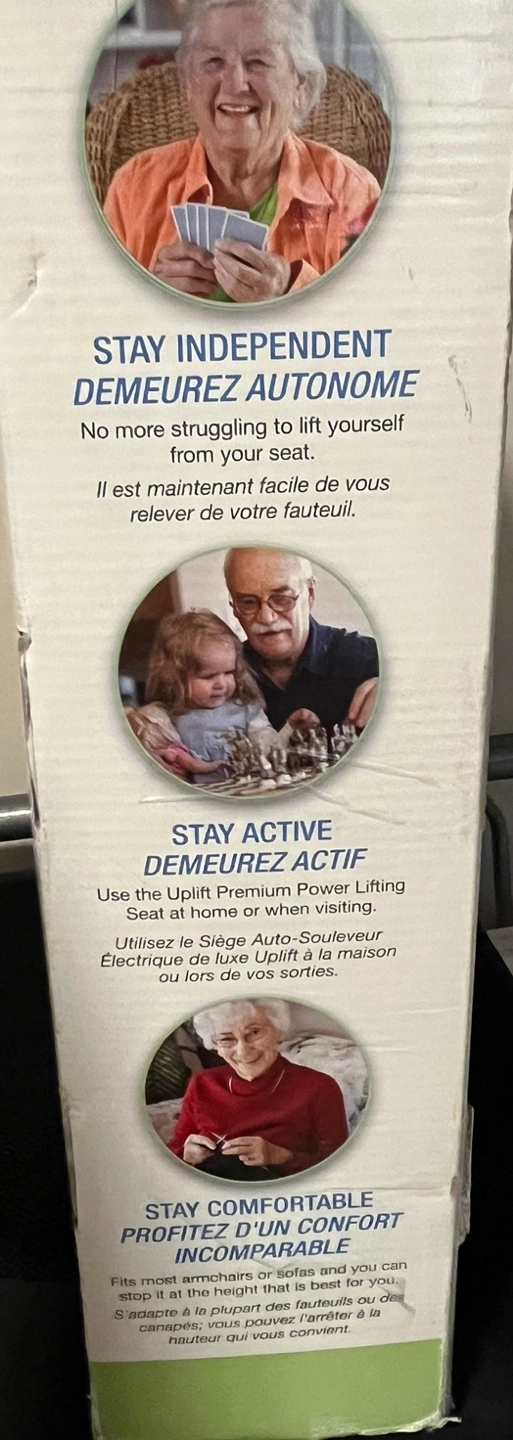 ❗️❗️Open to offers ❗️❗️ A power lifting seat for seniors and those who have difficulty getting up and down from a seated position. It’s pretty new I bought it for my grandfather. He used it for two weeks one month max It’s been in it’s package for quite some time now that’s why the packaging looks really old but the seat is pretty much new I can send you a video as well it works pretty good ❗️❗️I want to sell as soon as possible. So please if you have an offer, send it to me. ❗️❗️