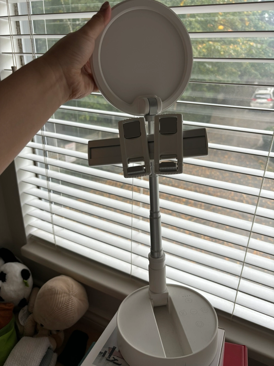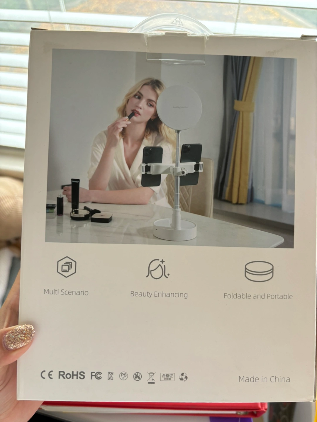Portable, beauty-enhancing and eye-caring LED lamp. Features a foldable design that makes it convenient to take with you wherever you go.
