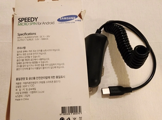 Car charger for android phones with micro USB port. INPUT/ ALIMENTATION:DC11-20V OUTPUT/SORE/E: 5.0V-1000mA