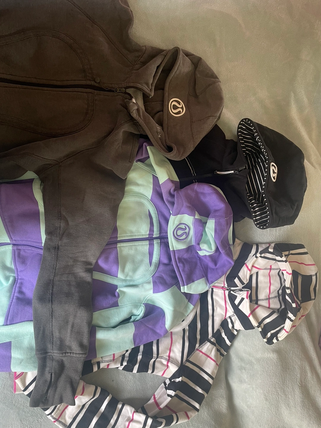 Lululemon hoodies. Grey and black still available Each hoodie: $70 Or 2 for $100!!! ( pink with black and white and purple with turquoise have been sold)