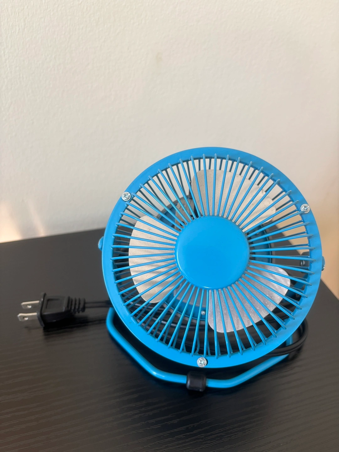 Small, quiet, light blue desk fan with a 2m cord. In great condition! Cash only. Pick up at RBC Bathurst and Sheppard.
