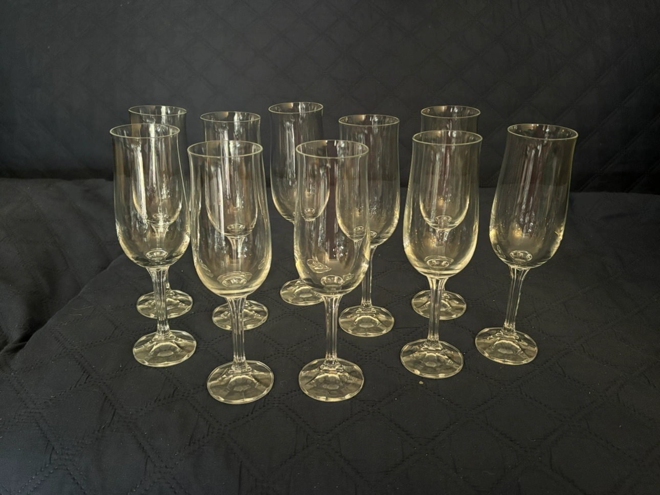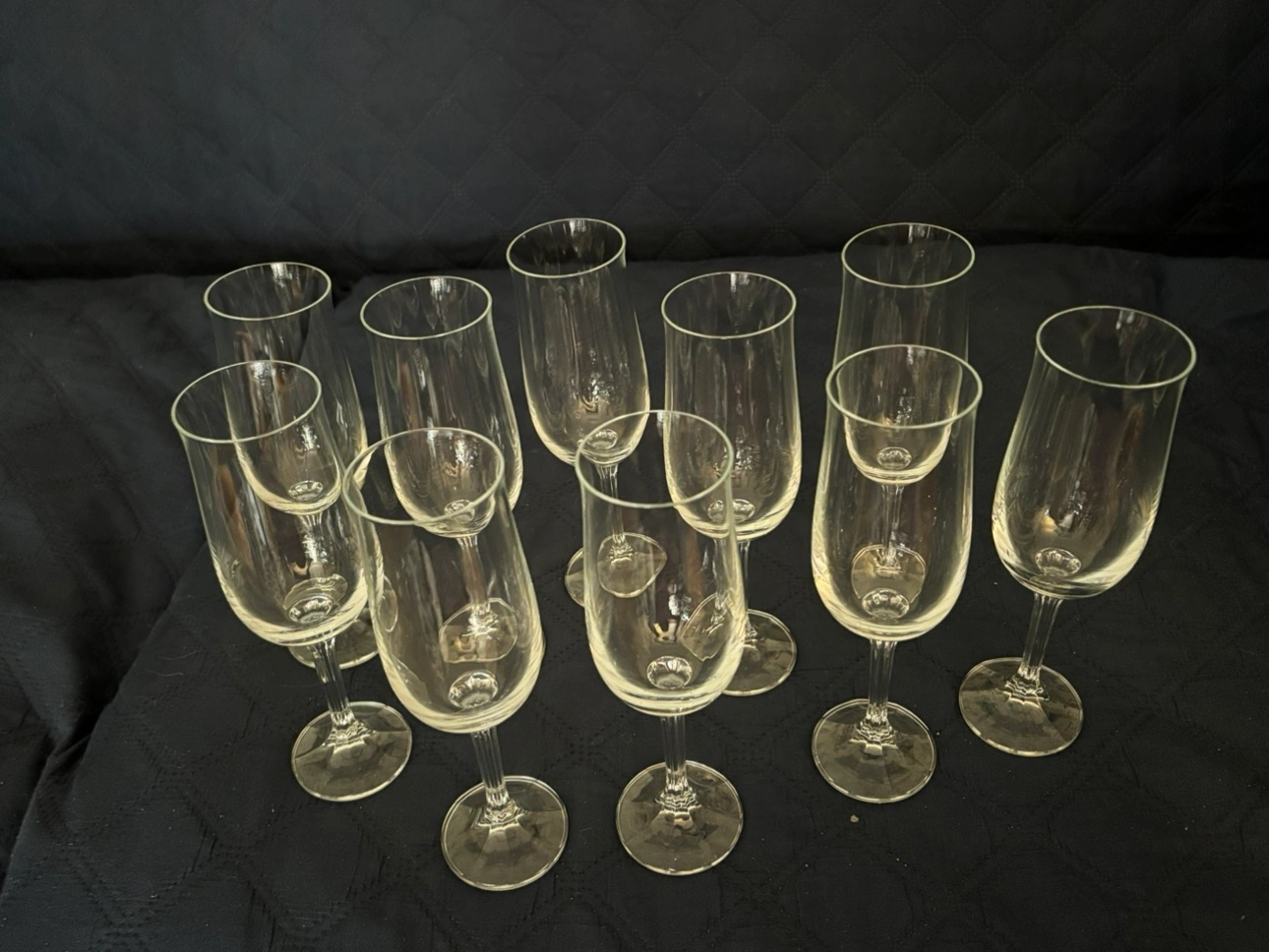 A set of 10 crystal champagne flutes. Great for entertaining! **PRISTINE CONDITION** Pick up and cash only pls